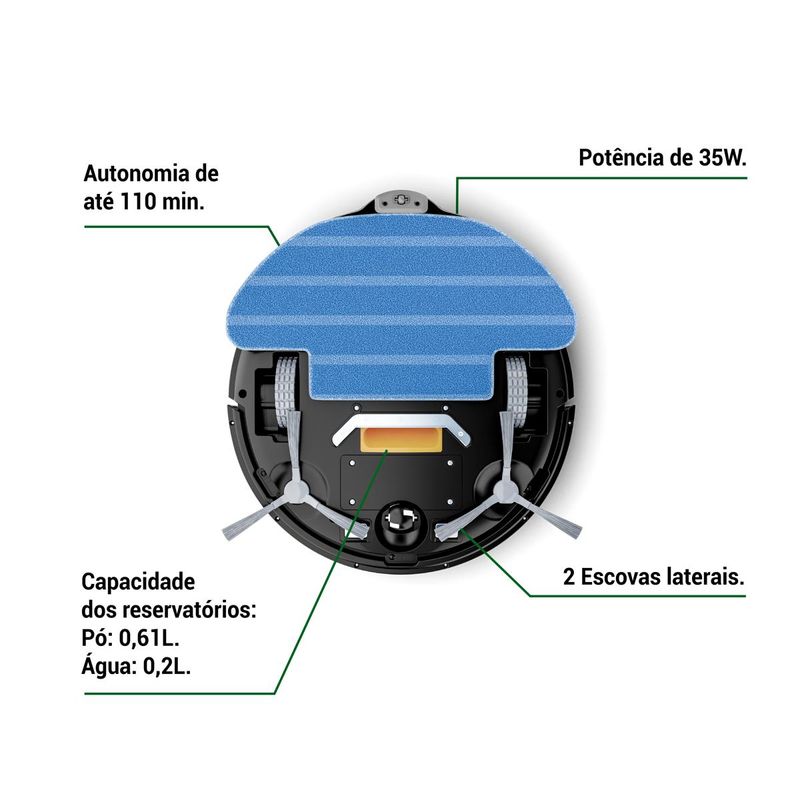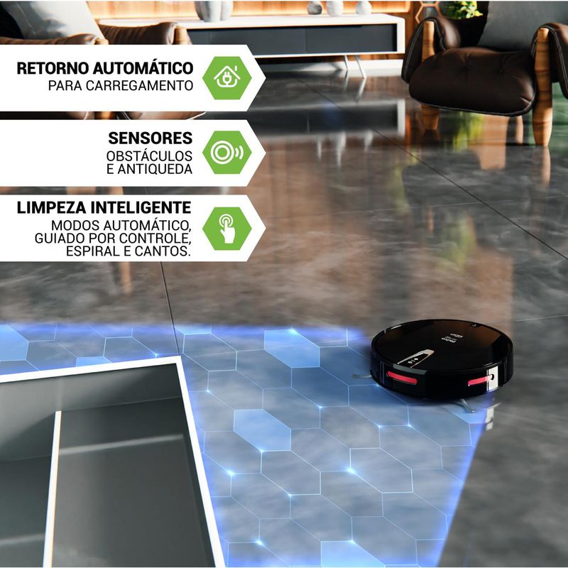 Com design moderno, tecnologia inovadora e alto desempenho, o Aspirador Robô Philco 3 em 1 Antiqueda Bivolt MOP PAS26P oferece máxima praticidade para manter seus ambientes sempre limpos, sem nenhum esforço!Equipado com um reservatório de água de 200ml e um reservatório de pó de 610ml, ele passa pano em todo o ambiente e acumula grande quantidade de sujeira, reduzindo a necessidade de esvaziamento constante. Além disso, sua função MOP permite aspirar e passar pano seco ou úmido, garantindo uma limpeza completa e eficaz.Para facilitar ainda mais o seu dia a dia, o Aspirador Robô de Pó Philco conta com sensores antiqueda e anticolisão, desviando automaticamente de obstáculos e evitando quedas em escadas ou desníveis. E quando a bateria estiver próxima do fim, ele retorna sozinho para a base de carregamento, garantindo total autonomia e praticidade. Com até 110 minutos de autonomia, ele limpa diversos cômodos em uma única carga.A tecnologia avançada do filtro HEPA retém até 99,5% de ácaros, poeira e micropartículas, proporcionando um ambiente mais saudável para toda a família. Além disso, o modelo 3 em 1 varre, aspira e passa pano, tornando-se um aliado indispensável para quem busca mais conforto e eficiência na rotina de limpeza.O Aspirador PAS26P oferece diferentes modos de limpeza, como aleatório, cantos, espiral e aspiração guiada pelo controle remoto, garantindo um desempenho superior em qualquer ambiente. Suas duas escovas laterais removem sujeiras de difícil acesso, alcançando cantos e bordas com eficiência.Escolha o Aspirador Robô Philco 3 em 1 Antiqueda Bivolt MOP PAS26P e transforme sua rotina de limpeza! • Possui 2 modos de operação: aspirador para resíduos secos e pano úmido* (mop) • 2 escovas laterais para limpeza • Possui controle remoto independente • Sensor antiqueda • Sensor de obstáculos • Reservatório para sólidos com 610ml • Reservatório para líquidos com 200ml • 110min de autonomia • Tempo de carregamento de 5 horas • Base para carregamento automático • Bateria de íons de lítio • Possui modos de limpeza aleatório, cantos, espiral e aspiração guiada pelo controle.