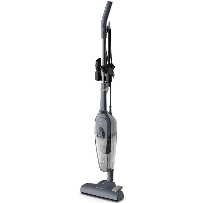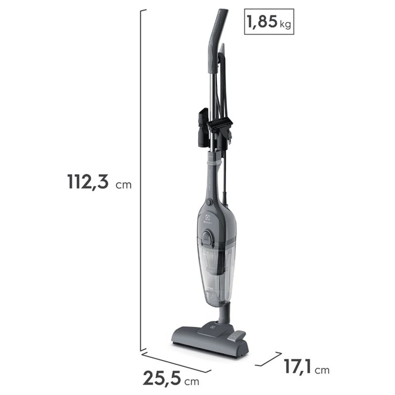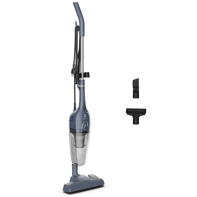 Com capacidade para capturar até as menores partículas o Aspirador de Pó Vertical com Fio Electrolux 2 em 1 Efficient com Cyclonic Power Azul STK17 garante uma limpeza superior em qualquer ambiente. Versátil o Aspirador de Pó com fio 2 em 1 pode ser utilizado tanto como aspirador de mão quanto aspirador vertical. Com 1600W de potência e um reservatório de 950ml de alta capacidade, evita ter que esvaziar o aspirador com frequência, facilitando a limpeza e otimizando o tempo. O modelo STK17 conta com o Bocal Multi-Clean que é perfeito para diferentes superfícies. Com um simples toque no pedal, é possível alternar a altura da escova entre alta e baixa, garantindo uma limpeza eficiente tanto em carpetes quanto em pisos frios evitando arranhões. Versátil, este acessório facilita a manutenção da sua casa com mais eficiência e praticidade. Possui Tecnologia Cyclonic Power que aliada ao filtro HEPA o ar é filtrado em várias etapas, retendo pó e outras partículas, além de reter ácaros, fungos e alergênico. Proporciona um alto poder de sucção e filtragem e devolve ao ambiente um ar mais puro. Além disso, prolonga a durabilidade dos filtros, mantendo a eficiência de filtragem por mais tempo. Para tornar sua experiência ainda mais prática, o aspirador vem com um suporte de acessórios. Isso permite que você mantenha todos os acessórios sempre à mão, evitando perdas e economizando tempo. Mais praticidade e organização para o seu dia a dia. CaracterísticasTipo: Aspirador de PóCapacidade: 950mlTipo de Coletor: InternoQuantidade de Bocais: 02 Especificações TécnicasModelo: STK17Potência: 1600W/Voltagem: 110V / 220V (Não é bivolt)Cor: AzulEAN: 7909569488447 (110V) / 7909569488454 (220V)Garantia: 12 meses Dimensões e PesoDimensões do produto sem embalagem (AxLxP): 135x115x485 mmDimensões do produto com embalagem (AxLxP): 155x180x535 mmPeso do produto sem embalagem: 2,0 Kg Peso do produto com embalagem: 2,3 Kg Itens Inclusos01 Aspirador de Pó Vertical