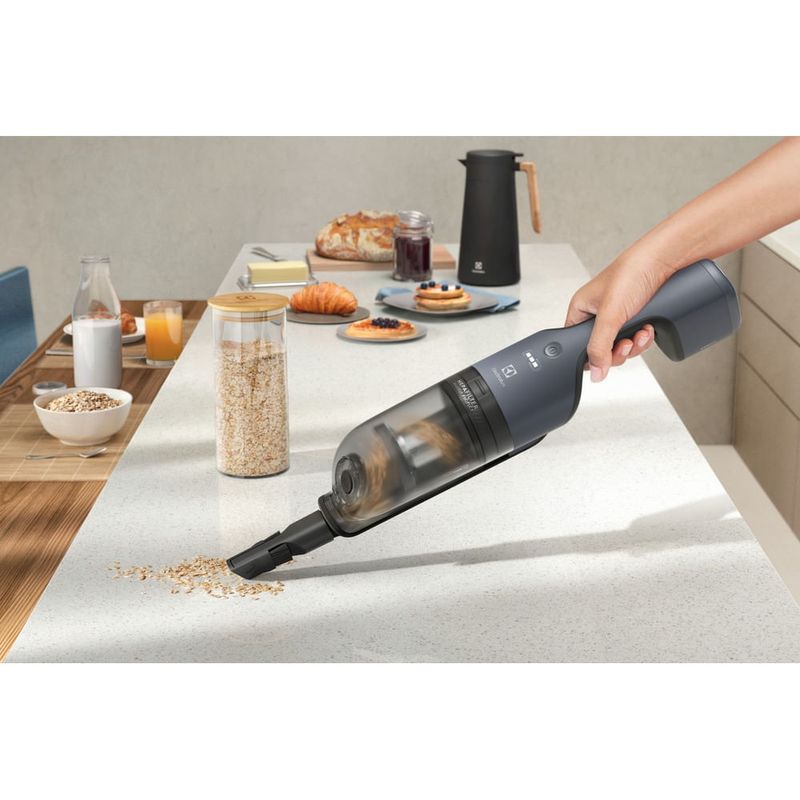 O Aspirador de Pó Vertical Sem Fio Electrolux Ergorapido 2 em 1 Efficient Cyclonic Power (ERG019) proporciona uma limpeza eficiente e prática dos ambientes, já que seu formato fino e ergonômico alcança até espaços de difícil acesso. Sua tecnologia Cyclonic Power oferece alto poder de sucção, sendo capaz de filtrar o ar em etapas para reter eficientemente o pó e outras partículas e devolver ao ambiente um ar mais puro. Essa tecnologia também prolonga a durabilidade dos filtros do aspirador e os mantém eficientes por mais tempo. Conte com o design slim do bocal e uma inclinação quase total do ergorapido até o chão para uma maior liberdade de movimento; alcance áreas de difícil acesso, incluindo abaixo de móveis¹. Com a tecnologia 180° EasySteer, o bocal rotaciona para as laterais, facilitando aspirar a sujeira de todos os cantos. Sua bateria de lítio contribui com a durabilidade do produto e oferece autonomia de até 30 min, para uma limpeza eficiente. O design sem fio oferece praticidade máxima para transportar ou manusear, e o estacionamento vertical permite que você posicione o produto verticalmente sem depender de apoio. Tenha a versatilidade de um aspirador 2 em 1. O ergorapido é ideal para limpar pisos, já que o bocal com escova rotativa aspira diferentes tipos de sujeiras e sua luz de LED facilita identificar as partículas menores, como pelos, para limpar o ambiente com precisão. Já a unidade de mão portátil é perfeita para aspirar outras superfícies, como mesas. O filtro Hepa elimina micropartículas e é eficiente contra alergênicos aspirados pelo ergorapido, como fungos e ácaros.É recomendado o uso de acessórios originais Electrolux.