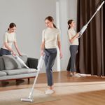 O Aspirador de Pó Vertical Sem Fio Light oferece praticidade e potência para a limpeza doméstica. Com motor brushless de 100.000 rotações por minuto e potência de 220W, aliado ao sistema de filtragem em três etapas que elimina até 99,98% das impurezas, ele garante um ar mais puro e limpezas profundas. Possui autonomia de até 45 minutos, dois níveis de potência e design leve de apenas 1,2 kg, ideal para alcançar locais altos e de difícil acesso. Vem com suporte de parede para recarga prática e acessórios como haste de extensão, bocal com escova, bocal longo e escova elétrica rotativa, tornando a rotina de limpeza mais eficiente, confortável e silenciosa.