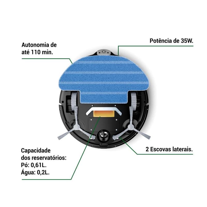 Com design moderno e tecnologia inteligente, o Aspirador Robô Philco PAS26P MOP Bivolt oferece uma experiência completa de limpeza sem esforço. Ele aspira, varre e passa pano, reunindo as funções para manter sua casa sempre limpa e higienizada. O modelo conta com 2 modos de operação: aspirador para resíduos secos e função MOP para passar pano úmido ou seco, garantindo uma limpeza 3 em 1. Suas duas escovas laterais removem a sujeira de cantos e bordas, enquanto os sensores de obstáculos e antiqueda oferecem segurança e autonomia total. Com 110 minutos de autonomia e bateria de íons de lítio, o robô cobre diversos ambientes com eficiência. Quando a carga está baixa, ele retorna automaticamente para a base de carregamento. O controle remoto independente permite personalizar a limpeza com os modos aleatório, cantos, espiral ou aspiração guiada. Com reservatórios de 610ml para sólidos e 200ml para líquidos, o aparelho reduz a frequência de esvaziamento e proporciona maior comodidade. 3 em 1: aspira, varre e passa pano com mop úmido Controle remoto com comandos de limpeza guiada Sensores antiqueda e anticolisão para ambientes seguros 110 minutos de autonomia e recarga automática Reservatórios grandes para sólidos (610ml) e líquidos (200ml)