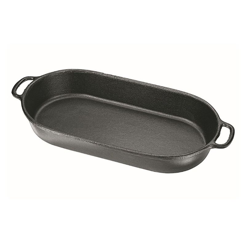 Assadeira Beira Alta Artesanal Panela Mineira 46x24cm 5,4L A Assadeira Beira Alta Artesanal da Panela Mineira é um produto prático e eficiente, com alto desempenho no preparo de diversas receitas. O calor distribuído por toda a superfície faz com que o alimento cozinhe de maneira uniforme, conservando suas propriedades e nutrientes, sendo ideal para assar, grelhar, fritar e cozinhar. Muito utilizada em buffets de self-service. Além de todos esses benefícios, ainda possui um design diferenciado, elegante e moderno, com fundo reto e bordas largas, o que faz com que seja a escolha perfeita para sua cozinha. Onde Usar: Pode ser utilizado em fogões a gás, a lenha, elétricos, cooktops de indução, vitro-cerâmicos, fornos, grills, churrasqueiras e fogo de chão. Orientação de Uso e Conservação:Antes do primeiro uso: Lave com água e sabão, seque bem com um pano e leve ao fogo para remover toda a umidade. Já vem pronta para uso, então não precisa ser curada. Guarde em um local seco. Após cada uso: Lave com água e sabão, usando uma esponja ou escova para remover todos os resíduos de alimentos. Se restarem resíduos, ferva água com um pouco de detergente para soltá-los. Pintura: Revestimento atóxico que garante durabilidade e proteção prolongada, sem causar nenhum dano à saúde. Características Técnicas e Medidas:Modelo: Retangular Arredondado.Material: Ferro Fundido.Comprimento: 46cm.Linha: Artesanal.Largura: 24cm.Litragem: 5,4L.Altura: 7,1cm.Peso: 5,83Kg.Alças: Ferro. Itens Inclusos:01 Assadeira Beira Alta Artesanal Panela Mineira 46x24cm 5,4L. Código: 446PMProdutoLojaPlast.
