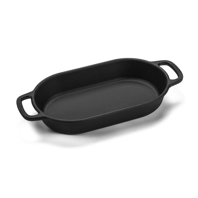 Assadeira Beira Alta Ferro Panela Mineira 36x21x5,5cm 3L A Assadeira Beira Alta da Panela Mineira é um produto prático e eficiente, com alto desempenho no preparo de diversas receitas. O calor distribuído por toda a superfície faz com que o alimento cozinhe de maneira uniforme, conservando suas propriedades e nutrientes, sendo ideal para assar, grelhar, fritar e cozinhar. Muito utilizada em buffets de self-service. O formato oval é particularmente adequado para cortes maiores de carnes, frangos inteiros, qualquer tipo de vegetal e até mesmo para assar pães. Além de todos os benefícios, ainda possui um design diferenciado, elegante e moderno, com fundo reto e bordas largas, o que faz com que seja a escolha perfeita para sua cozinha. Onde usar: Pode ser utilizada em fogões a gás, a lenha, elétricos, cooktops de indução, vitro-cerâmicos, fornos, grills, churrasqueiras e fogo de chão. Orientação de Uso e Conservação:Antes do primeiro uso: Lave com água e sabão, seque bem com um pano e leve ao fogo para remover toda a umidade. Já vem pronta para uso, então não precisa ser curada. Guarde em um local seco. Após cada uso: Lave com água e sabão, usando uma esponja ou escova para remover todos os resíduos de alimentos. Se restarem resíduos, ferva água com um pouco de detergente para soltá-los. Pintura: Revestimento atóxico que garante durabilidade e proteção prolongada, sem causar nenhum dano à saúde. Características Técnicas e Medidas:Modelo: Retangular Arredondado.Material: Ferro Fundido.Comprimento: 36cm.Alças: Alça de Ferro.Largura: 21cm.Peso: 2,850Kg.Altura: 5,5cm.Litragem: 3L.Linha: CHEF.Chapa: Lisa. Itens Inclusos:01 Assadeira Beira Alta Ferro Panela Mineira 36x21x5,5cm 3L. Código: 403PMProdutoLojaPlast.
