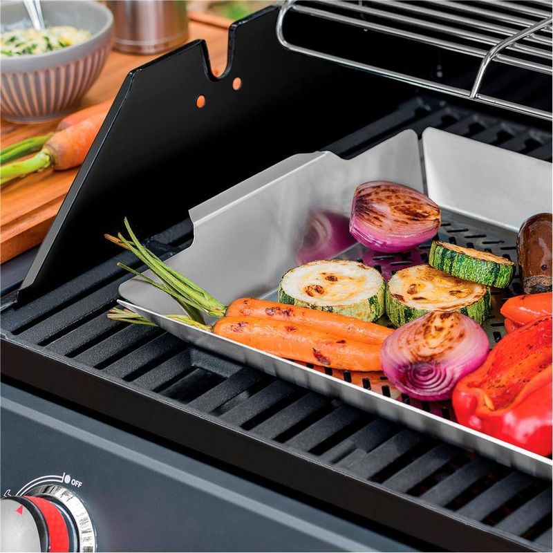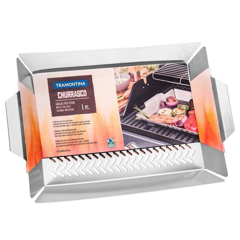 Aproveite mais essa novidade da Tramontina e inove nos churrascos de final de semana com os amigos e a família. Feita em aço inox, a Assadeira Funda para Grelhar perfurada, da linha Cosmos, é indicada para churrasqueiras a gás e a carvão e permite que o alimento seja defumado. Seu material resistente a altas temperaturas, mantendo as características originais por mais tempo. Leve agora mesmo e incremente seus churrascos com muito sabor.