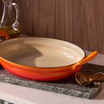 O design Heritage da Le Creuset é um ícone que conquistou seu espaço como a coleção mais vendida em stoneware e agora retorna também ao Ferro Fundido Esmaltado, trazendo uma interpretação moderna que celebra nossas origens. Inspirado na herança francesa da Le Creuset, esse design renovado preserva a essência atemporal da marca e reforça sua tradição em unir elegância, qualidade e durabilidade. Com a clássica alça em formato de arco e as alças laterais em relevo, os detalhes do Heritage despertam um sentimento de nostalgia, ao mesmo tempo em que apontam para a inovação e o futuro da cozinha. - Destaques• Exterior esmaltado resistente feito para prevenir rachaduras e lascas;• Interior esmaltado, na cor areia, é vitrificado e por esta razão não absorve aromas e sabores de alimentos;• Alças espaçosas permitem o uso de luvas grossas, possibilitando uma transferência segura do fogão para o forno e do forno para mesa;• Pegadores de aço inoxidável resistentes à qualquer temperatura do forno; - Especificações:• Cor: Laranja• Tamanho: 28cm• Material: Ferro Fundido• Capacidade: 1,6L• Fonte de Calor: Vitrocerâmico, Indução, Elétrico, Gás, Radiante, Grill, Forno• Comprimento: 27cm• Largura: 21cm• Altura: 6cm• País de Origem: França