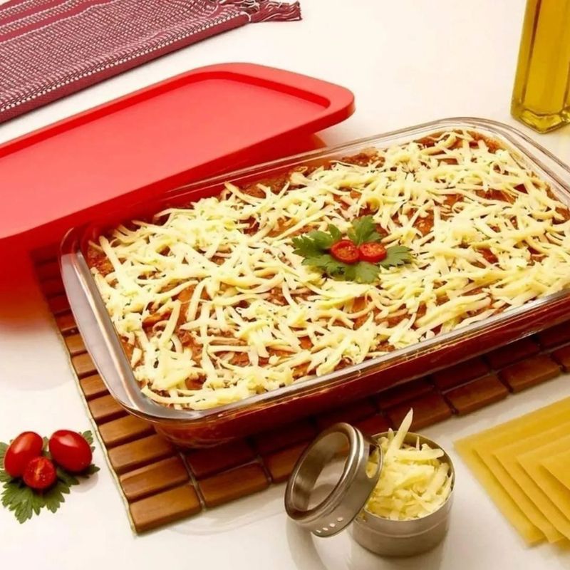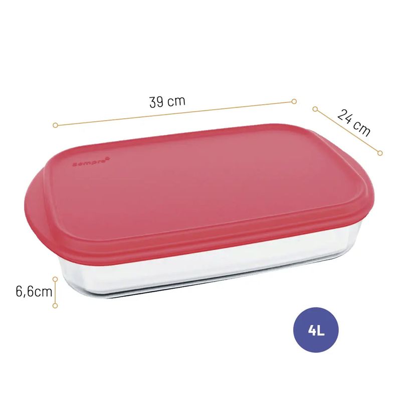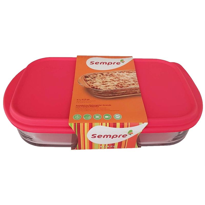 Assadeira Retangular de Vidro Tradicional Sempre com Tampa 4 Litros - Nadir Figueiredo 6822 Apresentamos a Assadeira Retangular Tradicional Sempre 4 Litros com Tampa, a escolha perfeita para quem busca praticidade e durabilidade no dia a dia. Com um design pensado para o uso versátil, esta assadeira com tampa é ideal para o preparo de suas receitas favoritas, desde assados suculentos a lasanhas gratinadas. Sua capacidade de 4L garante espaço para porções generosas, e a tampa multifuncional é o grande diferencial: facilita o transporte seguro, mantém os alimentos aquecidos na mesa e permite o armazenamento prático na geladeira. Esta travessa para forno da linha Sempre é sinônimo de qualidade, fácil limpeza e otimização do seu tempo. Desfrute de momentos deliciosos com menos esforço! Garanta já sua Assadeira Sempre 4L com Tampa e simplifique sua vida na cozinha! Característica do Produto: Material do Produto: Vidro Temperado Transparente Marca: Nadir Figueiredo Linha: Sempre Capacidade: 4 Litros Material da Tampa: Plástico Livre de BPA Indicação de Uso: Assar Altura: 6,6 cm Largura: 24 cm Comprimento: 39 cm Recomendações de Uso: Esse produto é ideal para forno convencional, micro-ondas, fritadeira elétrica, freezer, geladeira e lava-louça. Não o exponha diretamente sobre a chama do fogão, aquecedores de fogões elétricos, chapas ou grelhas. Não utilize seu produto em forno pré-aquecido. Não leve seu produto quente sobre superfícies frias ou molhadas, ou adicione líquido frio no produto quente. Evite o uso de abrasivos e utensílios pontiagudos. Não utilize o produto no forno se estiver lascado, trincado ou muito riscado. No micro-ondas utilize a tampa sempre semiaberta. Descongele a tampa com água corrente após a retirada do freezer.