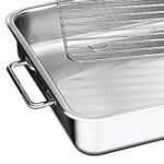 A Assadeira Tramontina Com Grelha é feita em aço inoxidável, com acabamento polido fosco e alças laterais para facilitar a locomoção de seus alimentos. O seu grande diferencial é a grelha que permite um cozimento mais adequado de suas carnes, aves ou peixes, sem que se tenha o contato com o óleo que é liberado dos alimentos. Mais nutrição e estilo em sua cozinha!
