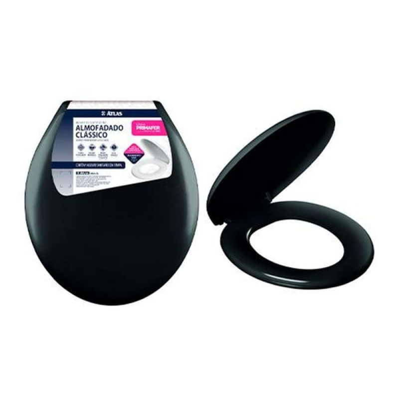 Assento Almofadado Preto com Tampa Envolvente - Kit de Fixação Incluso - ASSENTO ALMOFADADO PRETO - ATLASDeixe seu banheiro mais elegante e confortável com o Assento Almofadado Preto - Atlas. Com design clássico e acabamento liso, este assento é a escolha perfeita para consumidores exigentes que buscam qualidade e conforto.O Assento Almofadado Preto - Atlas é preenchido com espuma de poliuretano (PU), proporcionando maciez e conforto superiores. Sua tampa envolvente e suspiro na parte traseira garantem um ajuste perfeito e uma instalação fácil e segura. Além disso, o encaixe universal torna este assento compatÃvel com a maioria dos vasos sanitários.Com este assento almofadado, você terá um banheiro mais aconchegante e elegante, sem abrir mão da praticidade. Fácil de instalar e limpar, o Assento Almofadado Preto - Atlas é a escolha ideal para quem busca conforto e durabilidade em um único produto.- Acompanha kit para fixação- Encaixe Universal- Preenchido com espuma de poliuretano (PU)- Acabamento liso- Tampa envolvente- Suspiro na parte traseira- Fácil de instalar e limparTransforme seu banheiro com o Assento Almofadado Preto - Atlas e garanta qualidade e conforto para o seu dia a dia. Garantia: Conte com a qualidade e garantia de durabilidade da marca Atlas Universo do Lar. -------- Descrição Original enviada pelo Fornecedor: ASSENTO ALMOFADADO PRETO - ATLASAcompanha kit para fixação.Encaixe Universal.Preenchido com espuma de poliuterano (PU).Acabamento liso.Tampa envolvente.Suspiro na parte traseira.Fácil de instalar e limpar.Assento almofadado, com design clássico, adapta-se a qualquer banheiro.Macio e confortável é a escolha perfeita para consumidores exigentes. Características Gerais do Produto: Garantia: • 3 meses