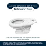 Assento Sanitario Contemporary Branco Para Vaso HervyO Assento Sanitario Contemporary Branco para vaso Hervy é a escolha definitiva para elevar o padrão de higiene e sofisticação do seu banheiro!Sua proteção antimicrobiana avançada impede o crescimento de germes e bactérias, proporcionando um ambiente mais limpo e para você e sua família. Comprovada por normas internacionais, essa tecnologia mantém sua eficácia ao longo do tempo. Durabilidade e Resistência: A única marca que utiliza MDF Ultra, muito mais durável e resistente. Contém camadas de pintura laqueada, este assento oferece não apenas beleza, mas também conforto térmico e alta resistência. As ferragens em alumínio anodizado, além de um acabamento refinado, trazem resistência extra, pois não oxidam nem enferrujam. Compatibilidade: Encaixe perfeito para o modelo Contemporary da marca Hervy, com ou sem caixa acoplada. Detalhes: Cor: Branco Limpeza: Recomenda-se a limpeza com pano úmido e sabão neutro, não utilizar produtos abrasivos ou químicos. Não pode ser lavado com água abundante ou ficar molhado, não pode usar ducha higiênica. Fabricante do Assento Sanitário: Pontto Lavabo (enviado na caixa conforme foto no anúncio). Instalação Descomplicada: Acompanha parafusos de fixação e embalagem com instruções de montagem. Encaixe os parafusos com borrachas sobre os buracos da bacia sanitária e aperte com a chave de fenda. Observação: O código 6LPF gravado na louça sanitária refere-se ao fluxo de água da descarga, não ao modelo da mesma. Importante: Este anúncio inclui somente o produto conforme descrito acima. Elementos decorativos das fotos não estão inclusos. RBN: Casa/Banho/Instalações e Acessórios de Banheiro/Vasos Sanitários e Peças/Assento de Vaso Sanitário | Conteúdo da Embalagem: 01 Assento Sanitário | Tipo: Assento Sanitário | Produto: Assento Sanitário | Site do Fabricante: | Marca do Assento Sanitário: Pontto Lavabo | Garantia: 6 meses contra de fabricação | Dica: Instalação: sem desmontar o produto, posicione sobre o vaso sanitário e encaixe os dois parafusos com as borrachas pretas dentro do furo do vaso. Aperte com a chave de fenda no sentido horário até ficar firme. | Para Vaso Sanitário do Modelo: Contemporary | Para vaso Sanitário da Marca: Hervy | Cor: Branco | Tonalidade: Branco | Material do Assento Sanitário: MDF Laqueado | Instruções de Limpeza: Recomenda-se a limpeza com pano úmido e sabão neutro, não utilizar produtos abrasivos ou químicos. Não pode ser lavado com água abundante ou ficar molhado, não pode usar ducha higiênica. | Almofadado?: Não | Peso do Produto: | Tipo de Fechamento: Fechamento Comum | Material da Fixação: Alumínio Anodizado | Precisa de baterias ou pilhas: Não | Regulamentações aplicáveis a produtos perigosos: Não aplicável | Código de certificação: Não aplicável | Ponto de Destaque01: Produzido em MDF Laqueado | Ponto de Destaque02: Ferragem em Alumínio Anodizado (não enferruja, não oxida) | Ponto de Destaque03: Possui 15cm de distância entre furos | Ponto de Destaque04: Produto vai completo, fácil instalação | Ponto de Destaque05: Pontto Lavabo | Termos de Pesquisa01: Assento Sanitário; Tampa de Vaso Sanitário; Contemporary Branco Hervy; Contemporary 6lpf; Hervy 6lpf | Quantidade de itens: 1 | Fonte de energia: Não aplicável | de caixas: 1 | Dimensões da embalagem: Altura: 5cm x Largura: 40cm x Comprimento: 50cm