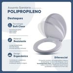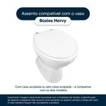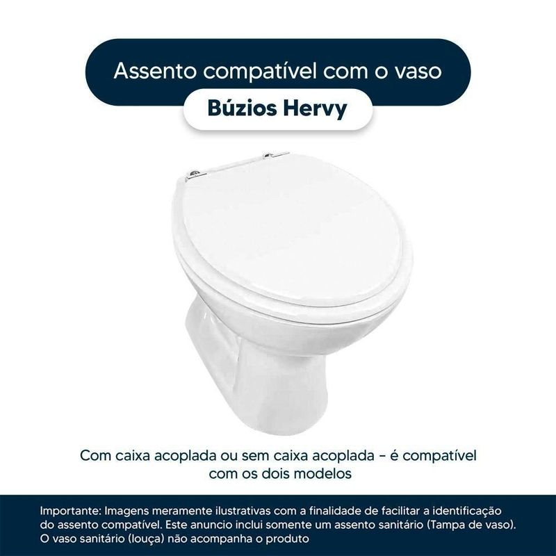 Assento Sanitário Búzios para Vaso Hervy Convencional Polipropileno Fechamento Suave Amortecedor BrancoMantenha o banheiro mais prático com o assento sanitário Pontto Lavabo Búzios, desenvolvido para vasos Hervy convencionais. Com fechamento suave, reduz o impacto e o ruído ao abaixar a tampa, trazendo mais conforto ao uso diário. Produzido em polipropileno rígido e impermeável, permite limpeza frequente com água e sabão neutro, contribuindo para um ambiente mais higiênico. A superfície lisa e brilhante ajuda a evitar acúmulo de sujeira e facilita a manutenção. Ideal para banheiros residenciais, combina com louças brancas e oferece encaixe adequado ao modelo Búzios da marca Hervy.Vantagens e diferenciais Fechamento suave: sistema soft close que evita batidas e ruídos. Material em polipropileno: estrutura rígida e impermeável para uso diário. Superfície lisa e brilhante: reduz acúmulo de sujeira e facilita a limpeza. Compatibilidade dedicada: encaixe específico para vaso Hervy modelo Búzios. Instalação simples: acompanha instruções para montagem prática pelo usuário.Especificações Técnicas Marca: Pontto Lavabo Modelo do assento: Búzios Tipo de assento: Convencional Compatibilidade: vaso sanitário Hervy modelo Búzios Cor: Branco Tonalidade: Branco brilhante Material do assento: Polipropileno Material das dobradiças: Plástico Sistema de fechamento: Fechamento suave (soft close) Peso do produto: 1,65 kg Distância entre furos: 15 cm Conteúdo da embalagem: 01 assento sanitário Quantidade de volumes: 1 Instruções de limpeza: usar água e sabão neutro, sem produtos abrasivos Garantia do fabricante: 3 meses contra defeitos de fabricaçãoObservações importantes A montagem ou instalação é de responsabilidade do comprador. Verifique se o local de entrega possui espaço e acesso adequados conforme as dimensões do produto. A entrega é realizada no térreo, não incluindo subida de escadas ou içamento. O produto não acompanha itens decorativos ou acessórios utilizados nas imagens.
