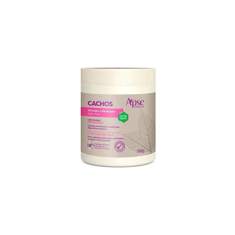 Cachos mais nutridos, definidos e brilhosos! Para cabelos ondulados, cacheados, crespos e em transição. Com Óleo de Coco, Manteiga de Karité e Tecnologia SuperWave Livre de: sulfatos, parabenos, óleo mineral, sal e silicones. 100% Vegano ;) O Ativador e Modelador Anti-Frizz Cachos hidrata e desenvolve o movimento natural dos cabelos, promovendo uma maior definição dos cachos e controle do frizz. Uso diário e sem enxágue.Com: Óleo de Coco: excelente umectante e hidratante. Manteiga de Karité: nutrição profunda. Tecnologia SuperWave: ativo vegetal rico em polissacarídeos extraídos das sementes de linhaça e de chia.Uso:Após lavar e condicionar os cabelos com a linha Cachos, aplique nos cabelos molhados ou secos o Ativador e Modelador Anti-Frizz Cachos com o auxílio de um pente ou utilizando a sua técnica de aplicação favorita. Não é necessário enxaguar. Pode ser usado todos os dias.