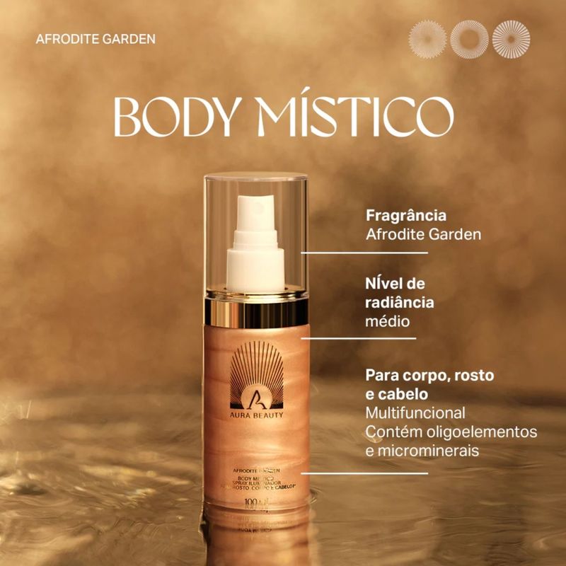 O Aura Afrodite Garden Body Spray Místico é uma fragrância corporal criada para despertar sensualidade, feminilidade e conexão energética. Com aroma envolvente e delicado, ele perfuma a pele de forma suave, trazendo uma sensação de bem-estar, encanto e equilíbrio ao longo do dia. Inspirado na energia de Afrodite, deusa do amor e da beleza, este body spray combina notas florais e adocicadas em uma composição leve, ideal para quem busca um perfume místico, sofisticado e marcante na medida certa. Perfeito para uso diário ou momentos especiais. Benefícios: Fragrância leve e envolvente Aroma floral delicado com toque adocicado Sensação de bem-estar e conexão energética Ideal para uso diário Perfeito para reaplicação ao longo do dia Modo de Uso: Borrife sobre a pele limpa, mantendo distância de aproximadamente 20 cm. Utilize sempre que desejar renovar a perfumação e a sensação de frescor.