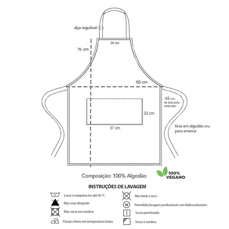Avental corpo inteiro em tecido com bolso e faixa. Alça regulavel no pescoço, ajustavel na cintura atraves das alças para amarrar e bolso frontal. Ideal para chef de cozinha, barista, jardinagem, pintura e outros. Este avental atende bem aos clientes mais exigentes priorizando conforto, qualidade e estilo. Contem: 1 Avental Unissex Tamanho: 76 x 65 cm 1 Faixa de Cabelo Tamanho: Unico Material: 100% Algodao Gramatura: 259 g/m²