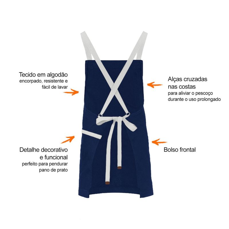 Avental e bandana de cabelo. Avental corpo inteiro com alças cruzadas nas costas e bolso frontal. Este modelo de avental com alças cruzadas é ideal para aliviar o pescoço durante o uso prolongado. Possui detalhe decorativo e funcional ao lado do bolso, perfeito para pendurar pano de prato. Feito para chef de cozinha, barista, jardinagem, pintura e outros. Este avental atende bem aos clientes mais exigentes priorizando conforto, qualidade e estilo. Produzido em tecido 100% algodao, facil de lavar e indicado para uso na maquina de lavar roupa. Contem: 1 Bandana do Chef Tamanho: Unico Material: 100% Algodao 1 Avental Unissex Tamanho: 76 x 66 cm Material: 100% Algodao CASACHA especializada em aventais e jogos americanos profissionais