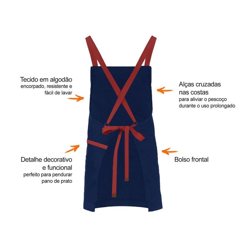 Avental e bandana de cabelo. Avental corpo inteiro com alças cruzadas nas costas e bolso frontal. Este modelo de avental com alças cruzadas é ideal para aliviar o pescoço durante o uso prolongado. Possui detalhe decorativo e funcional ao lado do bolso, perfeito para pendurar pano de prato. Feito para chef de cozinha, barista, jardinagem, pintura e outros. Este avental atende bem aos clientes mais exigentes priorizando conforto, qualidade e estilo. Produzido em tecido 100% algodao, facil de lavar e indicado para uso na maquina de lavar roupa. Contem: 1 Bandana do Chef Tamanho: Unico Material: 100% Algodao 1 Avental Unissex Tamanho: 76 x 66 cm Material: 100% Algodao CASACHA especializada em aventais e jogos americanos profissionais