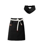 Jogo de aventais profissionais de algodao. Ajustavel na cintura, atraves das tiras para amarrar e bolso frontal. Ideal para chef de cozinha, barista, jardinagem, pintura e outros. Este avental é pratico, basico, veste bem e facil de lavar. O avental profissional da CASACHA atende bem aos clientes mais exigentes priorizando conforto, qualidade e estilo. O material sintetico não é proveniente de origem animal. Contem: 1 Faixa de Cabelo Tamanho: Unico 1 Avental de Cintura Tamanho: 70 x 60 cm Material: 100% Algodao