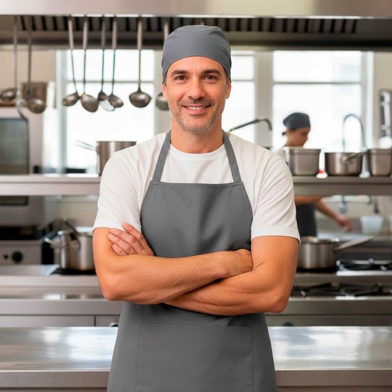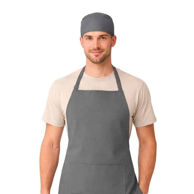 Avental corpo inteiro em tecido com bolso e bandana. Alça regulavel no pescoço, ajustavel na cintura atraves das alças para amarrar e bolso frontal. Ideal para chef de cozinha, barista, jardinagem, pintura e outros. Este avental atende bem aos clientes mais exigentes priorizando conforto, qualidade e estilo. Contem: 1 Avental Unissex Tamanho: 76 x 65 cm 1 Bandana do Chef Tamanho: Unico Material: 100% Algodao Gramatura: 259 g/m²