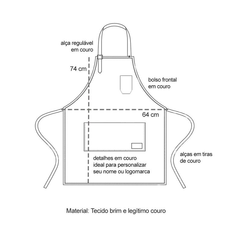 Avental corpo inteiro e bandana com couro. Alça regulavel no pescoço e ajustavel na cintura, atraves do vies em couro para amarrar, bolsos frontais. Este avental atende bem aos clientes mais exigentes priorizando conforto, qualidade e estilo. Bandana do chef foi produzido em tecido ajustavel, atraves do vies em couro para amarrar na parte de tras. Perfeito para bartender, garçom, confeiteiro, chef de cozinha e muito mais. Contem: 1 Avental Unissex Tamanho: 74 x 64 cm 1 Bandana do Chef Tamanho: Unico Material: Algodao e Legitimo Couro CASACHA especializada em aventais e jogos americanos profissionais