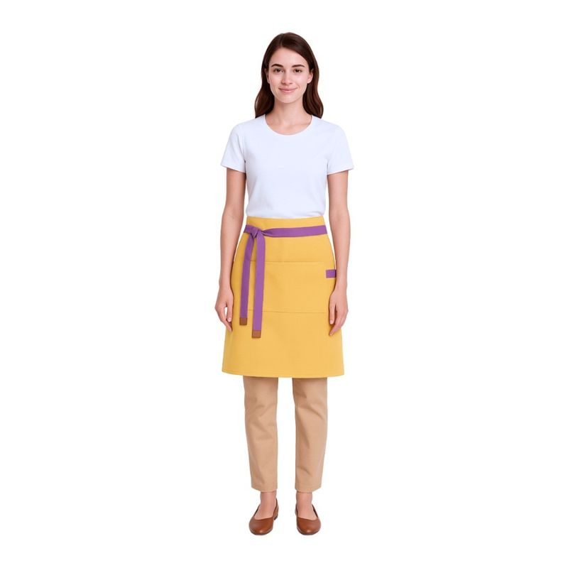 Avental de cintura unissex. Ajustavel na cintura, atraves das tiras para amarrar e bolso frontal. Ideal para chef de cozinha, barista, pintura, artesão e outros. Este avental é pratico, basico, veste bem e facil de lavar. O avental profissional da Casacha atende bem aos clientes mais exigentes priorizando conforto, qualidade e estilo. Contem: 1 Avental Meio Corpo Tamanho: 70 x 60 cm Material: 100% Algodao