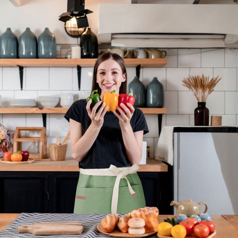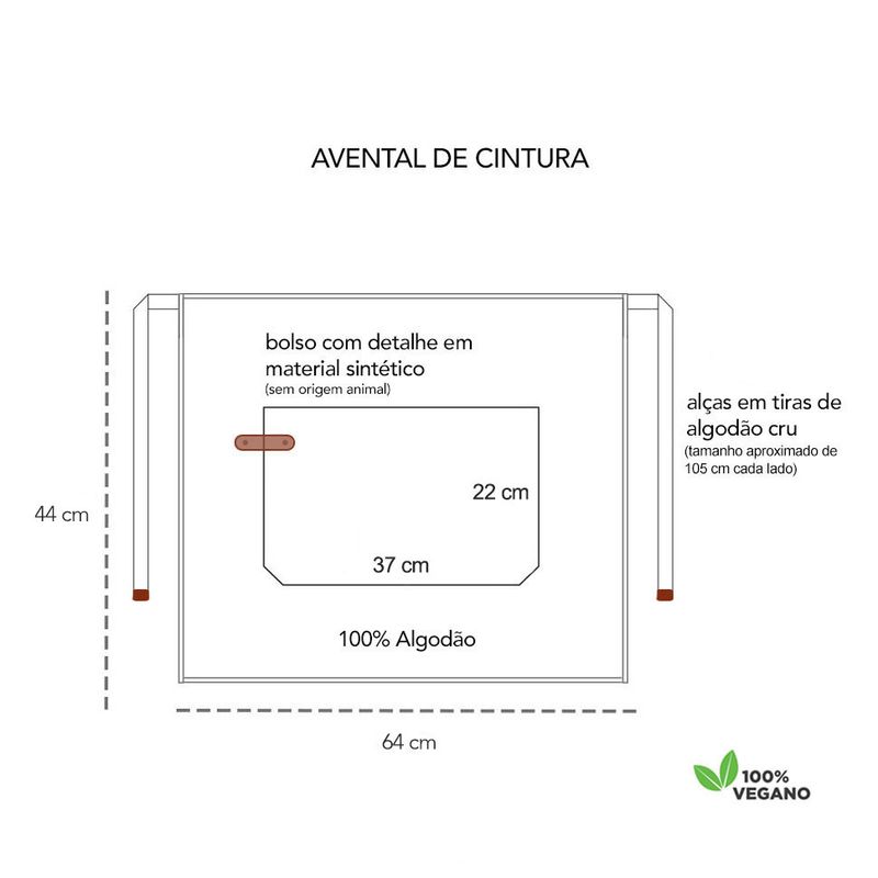 Avental de cintura de algodao. Ajustavel na cintura, atraves das tiras para amarrar e bolso frontal. Ideal para chef de cozinha, barista, jardinagem, pintura e outros. Este avental é pratico, basico, veste bem e fácil de lavar. O avental profissional da Casa Cha atende bem aos clientes mais exigentes priorizando conforto, qualidade e estilo. O material sintetico não é proveniente de origem animal. Contem: 10 Aventais Meio Corpo Tamanho: 64 x 44 cm Material: 100% Algodao