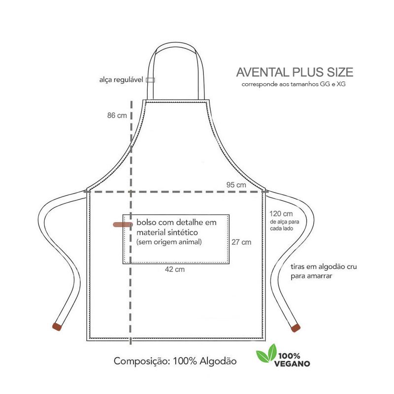 Avental corpo inteiro com tiras de algodao e bandana. O avental possui alça regulavel no pescoço e ajustavel na cintura com bolso frontal. Ideal para chef de cozinha, barista, jardinagem, pintura e outros. Este jogo profissional atende bem aos clientes mais exigentes priorizando conforto, qualidade e estilo. Os detalhes são em material sintético, sem origem animal. Contem: 1 Avental Unissex Tamanho: 76 x 64 cm 1 Bandana do Chef Tamanho: Unico Material: 100% Algodao CASACHA especializada em aventais e jogos americanos profissionais