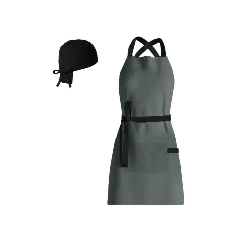Avental e bandana. Avental corpo inteiro com alças cruzadas nas costas e bolso frontal. Este modelo de avental com alças cruzadas é ideal para aliviar o pescoço durante o uso prolongado. Possui detalhe decorativo e funcional ao lado do bolso, perfeito para pendurar pano de prato. Feito para chef de cozinha, barista, jardinagem, pintura e outros. Este avental atende bem aos clientes mais exigentes priorizando conforto, qualidade e estilo. Produzido em tecido 100% algodao, facil de lavar e indicado para uso na maquina de lavar roupa. Contem: 1 Bandana do Chef Tamanho: Unico Material: 100% Algodao 1 Avental Unissex Tamanho: 76 x 66 cm Material: 100% Algodao CASACHA especializada em aventais e jogos americanos profissionais