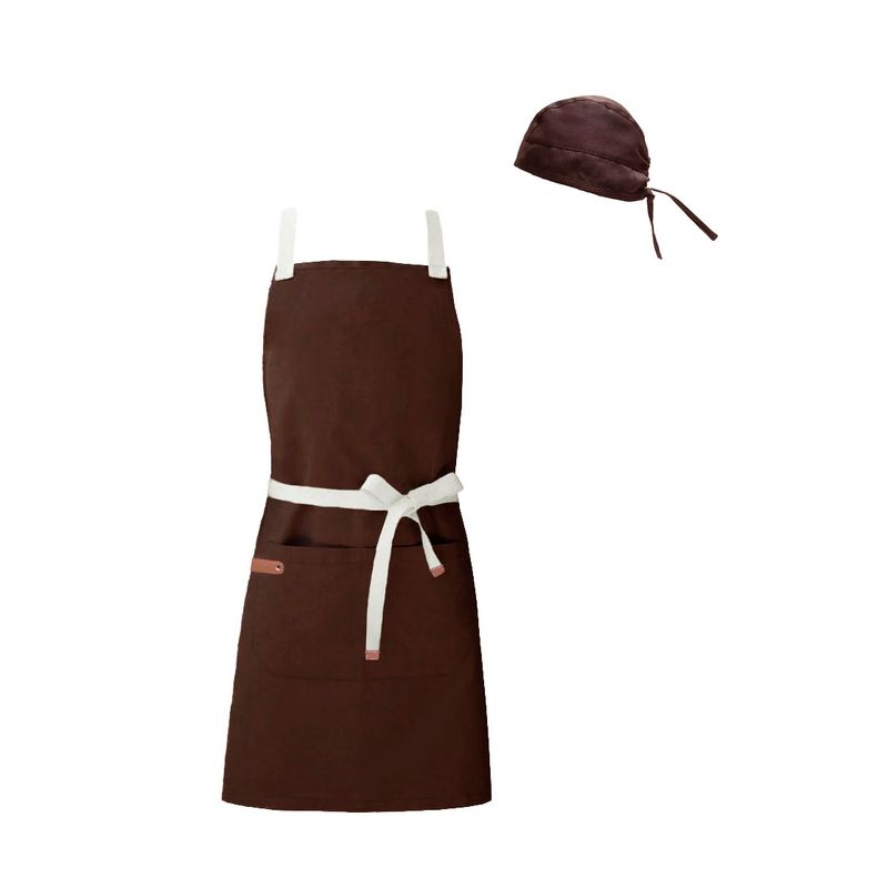 Avental e Bandana Marrom Bar Restaurante Vegano Unissex