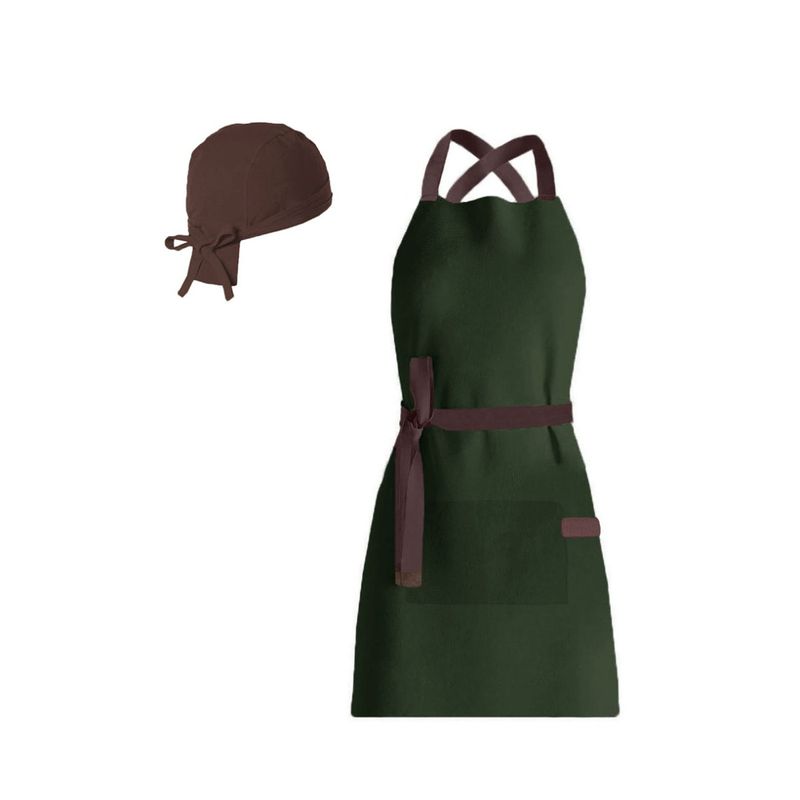 Avental e bandana de cabelo. Avental corpo inteiro com alças cruzadas nas costas e bolso frontal. Este modelo de avental com alças cruzadas é ideal para aliviar o pescoço durante o uso prolongado. Possui detalhe decorativo e funcional ao lado do bolso, perfeito para pendurar pano de prato. Feito para chef de cozinha, barista, jardinagem, pintura e outros. Este avental atende bem aos clientes mais exigentes priorizando conforto, qualidade e estilo. Produzido em tecido 100% algodao, facil de lavar e indicado para uso na maquina de lavar roupa. Contem: Contem: 1 Bandana do Chef Tamanho: Unico Material: 100% Algodao 1 Avental Unissex Tamanho: 76 x 66 cm Material: 100% Algodao CASACHA especializada em aventais e jogos americanos profissionais
