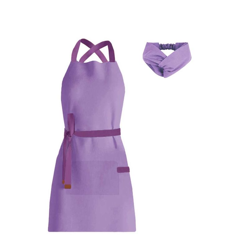 Avental e Faixa de Cabelo Lilas Roxo Lavanda Sorveteria Açai