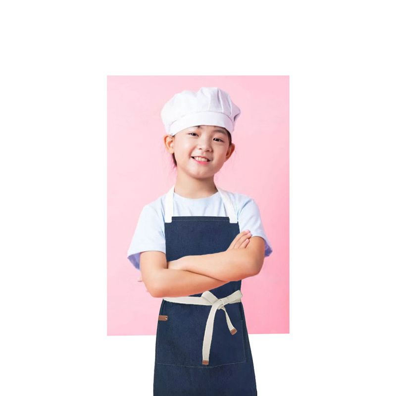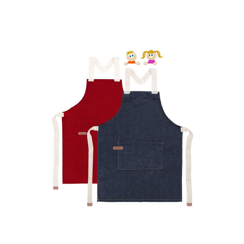 Avental Infantil corpo inteiro em algodao. Alça regulavel no pescoço e ajustavel na cintura com bolso frontal. Ideal para mini chef de cozinha, atividades artesanais e outros. Este avental infantil possui a qualidade e conforto do avental profissional. Contem: 1 Avental Infantil Jeans 1 Avental Infantil Vermelho Tamanho: 56 x 40 cm Material: algodao