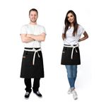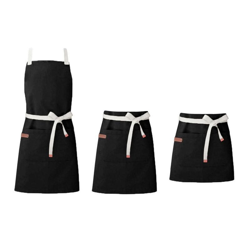 Jogo de aventais profissionais de algodao. Ajustavel na cintura, atraves das tiras para amarrar e bolso frontal. Ideal para chef de cozinha, barista, jardinagem, pintura e outros. Este avental é pratico, basico, veste bem e facil de lavar. O avental profissional da CASACHA atende bem aos clientes mais exigentes priorizando conforto, qualidade e estilo. O material sintetico não é proveniente de origem animal. Contem: 1 Avental de Cintura Curto Tamanho: 64 x 44 cm 1 Avental de Cintura Medio Tamanho: 70 x 60 cm 1 Avental Corpo Inteiro Tamanho: 76 x 64 cm Material: 100% Algodao