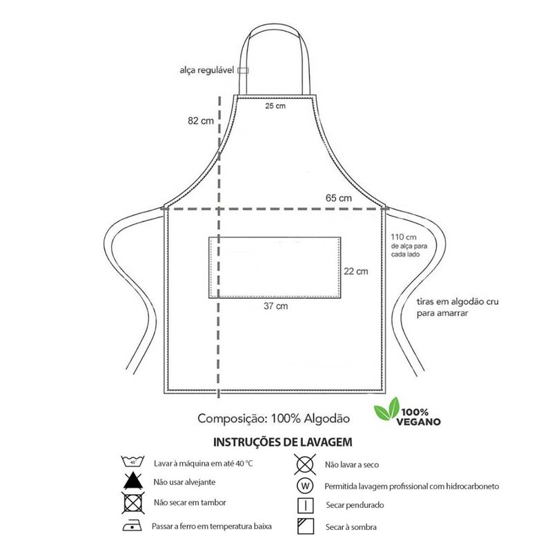 Avental corpo inteiro em tecido com bolso. Alça regulavel no pescoço, ajustavel na cintura atraves das alças para amarrar e bolso frontal. Ideal para chef de cozinha, barista, jardinagem, pintura e outros. Este avental atende bem aos clientes mais exigentes priorizando conforto, qualidade e estilo. Contem: 10 Aventais Unissex Tamanho: 82 x 65 cm Material: 100% Algodao