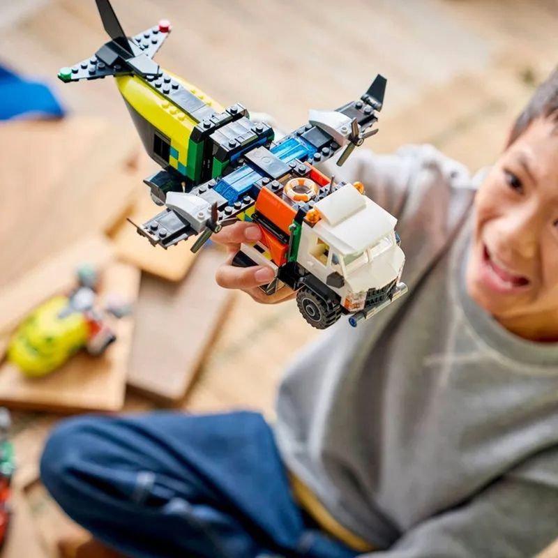 O conjunto LEGO® City Avião, Caminhão e Aerobarco Remix estimula a criatividade e a imaginação de crianças a partir de 7 anos com um sistema modular que permite montar, desmontar e recombinar veículos de resgate. O kit reúne três modelos icônicos — avião médico, aerobarco da guarda costeira e caminhão de serviço — que podem ser misturados para criar novas soluções em missões de busca e salvamento.Com minifiguras e acessórios temáticos, o conjunto convida a brincadeiras dinâmicas e cheias de ação. A experiência de construção é intuitiva e pode ser ampliada com o aplicativo LEGO Builder, que oferece instruções em 3D para acompanhar o progresso passo a passo. - Destaques:• Conjunto 3 em 1 com veículos de emergência combináveis• Design modular que permite múltiplas criações personalizadas• Inclui minifiguras de médico, guarda costeiro e socorrista• Acessórios que enriquecem as brincadeiras de faz de conta• Compatível com outros conjuntos da linha LEGO City - Especificações:• Linha: LEGO® City• Modelo: Avião, Caminhão e Aerobarco Remix• Idade recomendada: a partir de 7 anos• Quantidade de peças: 988• Altura: 8 cm• Largura: 6 cm• Comprimento: 16 cm - Observações:• Dimensões referentes ao modelo de caminhão de serviço• Aplicativo LEGO Builder disponível para instruções digitais em 3D• Conjuntos adicionais da linha LEGO City vendidos separadamente