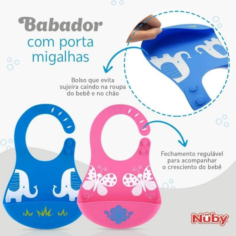 """Babador de Silicone Com Bolso Coletor Elefante Azul - Nûby Os bebês adoram segurar os alimentos com as mãos e por ainda estarem desenvolvendo a coordenação motora acabam fazendo muita sujeita na hora do papá. O Babador de Silicone com Porta Migalhas é ideal para esta fase de descoberta de novos sabores e texturas. Produzido em 100% silicone, material macio e impermeável, é prático e fácil de limpar. Possui bolso porta migalhas que evita que restos de alimentos caiam no chão ou na roupinha do bebê. Características: - 100% silicone, material macio e confortável - Material impermeável e fácil de limpar - Com bolso que evita que as migalhas caiam na roupa do bebê e no chão - Com fechamento regulável para acompanhar o crescimento do bebê - Pode ser enrolado para levar para passeios - Livre de Ftalatos e BPA Idade recomendada: +6 meses """