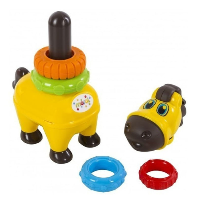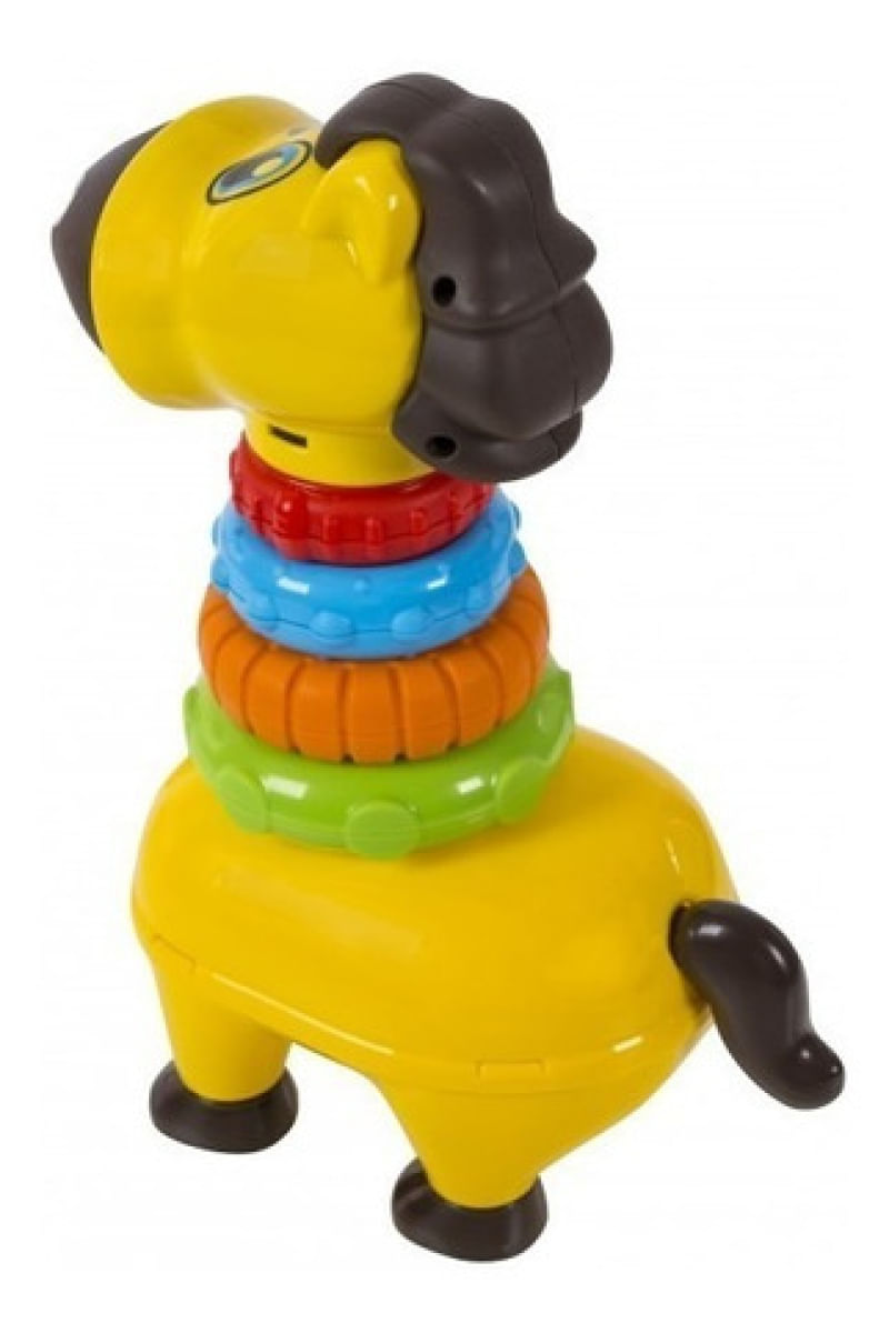 Um brinquedo colorido, interativo e com som, este é o Baby Pony Brinquedo Infantil Empilhável com Som - Maral. Um simpático pônei com quatro argolas de diferentes tamanhos e cores vibrantes, para a criança empilhar e encaixar, e além de divertir, auxilia no desenvolvimento da sua coordenação motora. Vem também com rodinhas nas patas, e ao puxar o seu rabinho, ele emite som de um pônei de verdade! O Baby Pony Brinquedo Infantil Empilhável com Som - Maral é feito em plástico livre de Bpa, necessita de 3 baterias AG13/LR44 (já inclusas para teste), possui selo Inmetro e é indicado para crianças a partir dos 6 meses de idade.Informações do ProdutoItens Inclusos: 1 Pônei 4 ArgolasDimensões aproximadas: 10x19x32cmRecomendado: A partir de 6 meses de idade.Alimentação: 3 Baterias AG13/LR44 (já inclusas para teste)Material composição:Plástico, componentes eletrônicos para módulo de som.