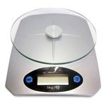 Balança De Cozinha Digital Até 5kgFICHA TÉCNICA-Material: ABS, VIDRO E COMPONENTES ELETRÔNICOS-Dimensão: A: 5CM X L: 15CM X C: 19,5CM-Peso: 0,440G-Capacidade: (L), (KG) ou (V) ATÉ 5KGBalança Digital 1g até 5kg Cozinha Alta Precisão AlimentoComponentes eletrônicos;Alta precisão na pesagem;Capacidade para até 5kg;Visor LCD fácil de visualizar;Design moderno e compacto, fácil de transportar;Com graduação de 0,1g;Utiliza 2 pilhas AAA ( NÃO INCLUSAS);Possui indicador de sobrecarga;Visor em LCD com 4 dígitos;Plataforma em vidro temperado;Com função TARA para múltiplas pesagens de ingredientes;Com desligamento automático;Plataforma removível, facilita a limpeza;Possui indicador de bateria fraca;Pode ser usada com uma escala postal para pesagem de pequenos pacotes com até 11 libras;