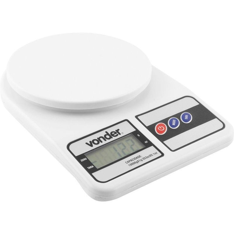 Balança Digital De Precisão 10 Kg - VonderConteúdo Embalagem:1 BalançaDestaques e diferenciais:Possui visor de cristal líquido (LCD), função desligamento automático, indicador de bateria fraca, sistema tara e função para pesar em grama ou onçaAplicações e dicas de uso:Balança digital compacta, indicada para medição da massa de pequenos objetos. Observação: vetado o uso comercial, produto não calibrado, podendo ser utilizado apenas para uso doméstico. Não acompanha pilhas.Características Técnicas:Material da balança: Plástico Capacidade da balança: 10 kg / 353 oz Comprimento da balança digital: 230,0 mm Largura da balança digital: 160,0 mmGarantia:Garantia legal: 90 dias Produto: Balança
