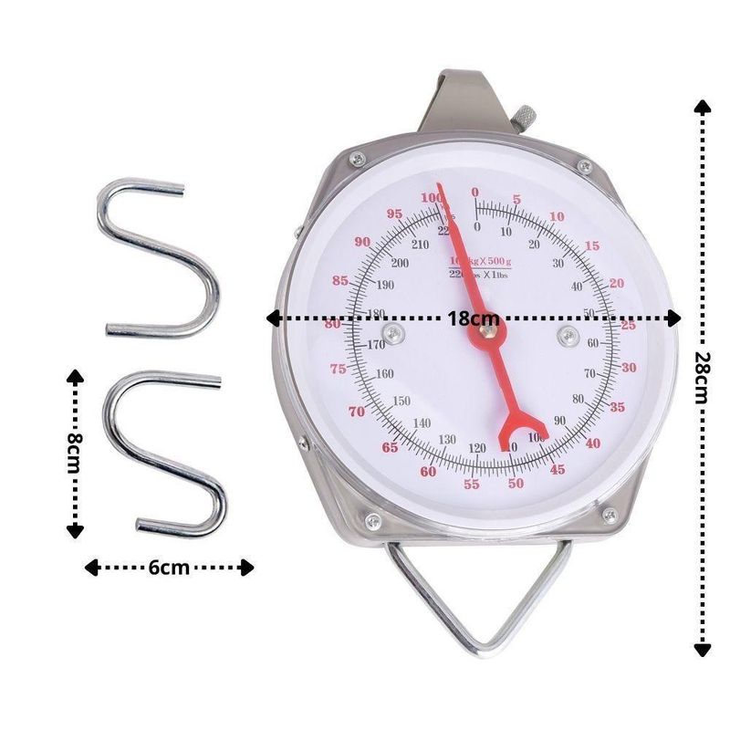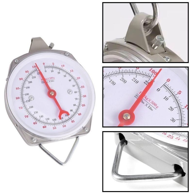 Balança Suspensa 100kg Com Gancho - Alta PrecisãoBalança Suspensa Mecânica 100kg com Gancho e Alta PrecisãoA solução prática e robusta para pesagens em diferentes ambientes!Ideal para fazendas, sítios, açougues, feiras e até pescarias, a Balança Suspensa Mecânica combina precisão, durabilidade e facilidade de uso. Sua capacidade de até 100 kg com graduação de 500g torna esta ferramenta indispensável para quem busca controle e eficiência nas pesagens.Principais Benefícios:1. Alta Capacidade e PrecisãoCapacidade para até 100 kg com subdivisões de 500g, oferecendo medições rápidas e confiáveis.2. Estrutura Robusta e DurávelFabricada em plástico resistente e aço com 1 mm de espessura, suas molas são tratadas com material anti-ferrugem para garantir longa vida útil, mesmo em ambientes úmidos.3. Visor de Fácil LeituraO visor em acrílico oferece leitura clara e rápida, ideal para o uso em atividades diárias.4. Versatilidade com Ganchos DuplosInclui gancho superior e inferior, permitindo a pesagem de diversos tipos de objetos com segurança e praticidade.Especificações Técnicas:Capacidade: Até 100 kg (220 lbs).Unidade de Medida: Quilogramas (kg) e libras (lbs).Graduação: 500 g.Dimensões Aproximadas: Altura (com ganchos): 44 cm.Altura (sem ganchos): 28 cm.Largura: 18 cm.Material: Plástico resistente, aço tratado e visor em acrílico.Vantagens Exclusivas:Resistente a Impactos: Construção robusta para suportar uso intenso.Fácil Transporte: Leve e prática.Multiuso: Ideal para ração, aves, leite, pescados e muito mais.Cuidados com o Produto:Limpeza: Use pano úmido e evite produtos abrasivos.Evite exposição prolongada a umidade para garantir maior durabilidade.A Aplicação Ideal:Pesagem de ração para animais em fazendas e sítios.Controle de peso em aves e pequenos animais.Uso doméstico, profissional ou em mercados e cozinhas industriais.Por que escolher esta balança?A Balança Suspensa Mecânica com Gancho é confiável, prática e durável. Perfeita para quem precisa de precisão em diferentes contextos, ela alia funcionalidade e qualidade, atendendo a todas as suas necessidades de pesagem de maneira eficiente e profissional.