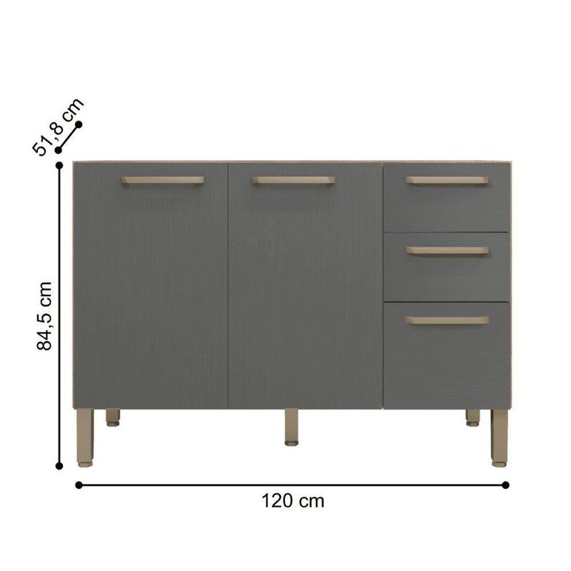 Balcao 3 Portas C/ 2 Gaveteiro 1,20 Mad Versalhes C/ Tampo Freijó GrisO Balcão é um exemplo de elegância e sofisticação na decoração de cozinhas. Com matéria prima que respeita o meio ambiente. Possui 3 portas com dobradiças 100 % metálicas que garantem mais segurança e qualidade ao produto, dispõe também 2 gavetas com corrediças telescopicas que suavizam a abertura e fechamento das gavetas. Permite a utlização de tampo inox.Informações do produto:Altura: 84,5 cmLargura: 120 cmComprimento: 51,8 cmPortas: Sim (2)Gavetas: Sim (3)Prateleiras: Sim (1)Nichos: NãoPés: Sim (5)Possui Tampo: SimCor: Freijó GrisItens inclusos:01 BalcãoKit completo para montagem e manual de instruçõesGarantia: 3 meses.Informações Complementares:- Verificar o tamanho e detalhes do produto antes da compra.- Fotos meramente ilustrativa.- A transportadora entregará o produto no andar térreo do endereço de entrega.- Avaliar a mercadoria no ato do recebimento e recusar em caso de divergência ou avarias.- Não nos responsabilizamos pela montagem e desmontagem do produto no ato da entrega e devolução, assim como os custos gerados nestas situações.- Sugerimos a contratação de um montador profissional para a montagem do produto. Não nos responsabilizamos por avarias causadas no ato da montagem. Width: 53 | Color: Marrom | Height: 10 | Material para Filtro: MDP | REQUIRES_ASSEMBLY: Sim | Length: 131 | Largura Produto com Embalagem (cm): 53,5 | Comprimento Produto com Embalagem (cm): 131,9 | Num. Volumes: 2 | Weight: 35.6 | Tipo de Cama/Cabeceira: Padrão | Peso Produto Com Embalagem (Kg): 35,6 | Acompanha Colchão: Sem Colchão | Fabricante: Kits Paraná | Modelo: Versalhes | Altura do Produto com Embalagem (cm): 10,9 | Tonalidade (Leroy): Marrom