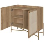 Descubra o charme e a sofisticação do Balcão Aparador Cantinho do Café Indy, da Lyam Decor, um verdadeiro destaque para sua sala de jantar ou sala de estar! Com seu estilo escandinavo, esse balcão aparador une funcionalidade e elegância de forma irresistível. Os pés metálicos estilo industrial garantem durabilidade e um toque moderno, enquanto o detalhe em tela sintética traz um ar artesanal e suave. O tampo com rebaixo estilo bandeja não só é um convite a momentos de descontração, como também oferece praticidade para servir seus convidados com estilo. Ideal para armazenar suas bebidas favoritas e acessórios, esse balcão multiuso é a peça que faltava para transformar seu ambiente em um espaço acolhedor e cheio de personalidade. Deixe sua casa mais charmosa e funcional com o Balcão Cantinho do Café Indy que é puro encanto! Adicione agora mesmo ao seu carrinho! Dimensões do Balcão (L x A x P) 93 x 81 x 37,5 cm Características do Balcão: Estrutura em MDP 15mm com acabamento BP e fundo em HDF 3mm. Produto na cor Hanover e pés na cor Dourado, ambos fosco. 02 portas com dobradiças metálicas em aço com proteção anticorrosão. Divisão interna com 01 prateleira e 03 nichos. Tampo com rebaixo, estilo bandeja. Puxadores de Poliestireno na cor Dourado. Portas com aplique de tela sintética (PVC com poliéster). Pés de tubo metálico em aço e acabamento em pintura epóxi, as extremidades dos pés possuem ponteiras plásticas para evitar atrito do móvel com o piso. Peso máximo suportado 25 kg distribuídos. - A limpeza deve ser feita com pano levemente umedecido em água limpa, sem esfregar, não utilizar produtos abrasivos, desengordurantes, álcool ou solvente. Observações importantes: - Produto para uso residencial em ambiente interno, não devendo ficar exposto diretamente ao sol, calor e umidade excessivos. - Pode haver alguma diferença de tonalidade entre a imagem e o produto real, por conta do tratamento de imagens e a calibração de cores do seu monitor. - As imagens são meramente ilustrativas, não acompanham objetos de decoração e eletrônicos. - Ao receber a mercadoria, o cliente deve verificar as condições da embalagem, caso haja alguma avaria não assine o comprovante de recebimento. - Montagem, desmontagem e outras instalações serão de responsabilidade do cliente. Não nos responsabilizamos, no ato da entrega, por subir escadas/elevadores ou pelo transporte por guincho em apartamentos. Eventuais despesas são de responsabilidade do comprador. - Confira as dimensões do produto e certifique-se de que passará normalmente por supostos elevadores, portas, escadas e/ou corredores de sua residência.