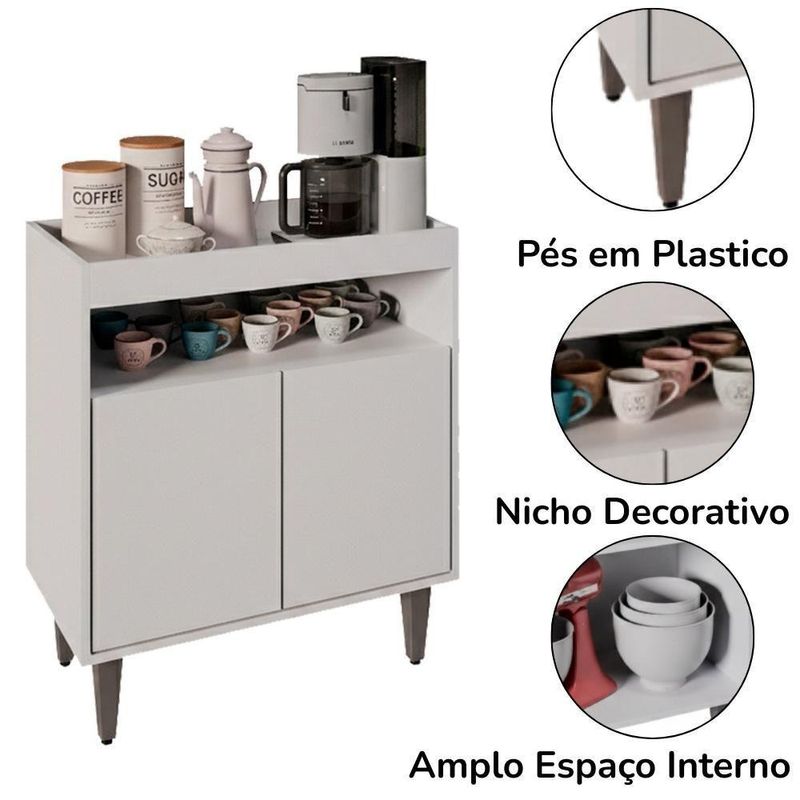 Balcao Aparador Multiuso 2 Portas Alice Bp 71 Cm Eratto Moveis - Branco BrancoBalcão Aparador Alice, ideal para quem busca funcionalidade e valorização do ambiente. Produzido em MDP 15 mm com acabamento BP, conta com portas equipadas com dobradiças metálicas e sistema de abertura passante. Possui amplo espaço interno, nicho decorativo e tampo estilo bandeja, ideal para acomodar utensílios ou itens decorativos. Pés plásticos com regulagem garantem melhor estabilidade. Produto entregue em 01 volume.DimensõesAltura: 86 cmLargura: 70,5 cmProfundidade: 38,5 cmEspecificações TécnicasModelo: AliceMaterial: MDPAmbiente: CozinhaPeso máximo suportado: 30 kg distribuídosSistema de MontagemManual de montagem incluso e kit de instalaçãoMontagem, desmontagem e outras instalações são de responsabilidade do clienteRecomendação de LimpezaUtilizar pano seco para retirada do póEvitar produtos abrasivos e contato direto com a umidadeImportante SaberImagens meramente ilustrativasObjetos de decoração não acompanham o produtoA tonalidade da cor pode variar conforme iluminação e monitorVerifique a quantidade de VOLUMES e o estado da embalagem no recebimentoEm caso de avarias, NÃO ASSINE e RECUSE a mercadoriaNão realizamos subida por escadas, elevadores ou transporte por guinchoConfira as dimensões do produto antes da compraGarantia de Fábrica90 dias para eventuais defeitos de fabricação Baterias são necessárias?: Não | Certificação de teste externa: Não se aplica | Componentes incluídos: Kit de instalação | Dimensões do item: Altura: 86 cm Largura: 70,5 cm Profundidade: 38,5 cm | Exige montagem: Sim | Fabricante: Maderatto | Is Fragile: Não | Número da peça: Não se aplica | Número de caixas: 1 | Número do modelo: Alice | Palavras-chave de Pesquisa: Balcão Aparador | Peso do item: 24 | Principais Características do Produto 0: Acabamento BP | Principais Características do Produto 1: Pés em Plasticos | Principais Características do Produto 2: 1 nicho | Quantidade de itens: 1 | Cor: Branco