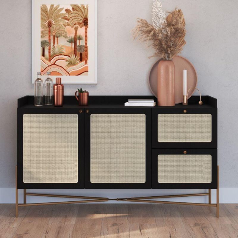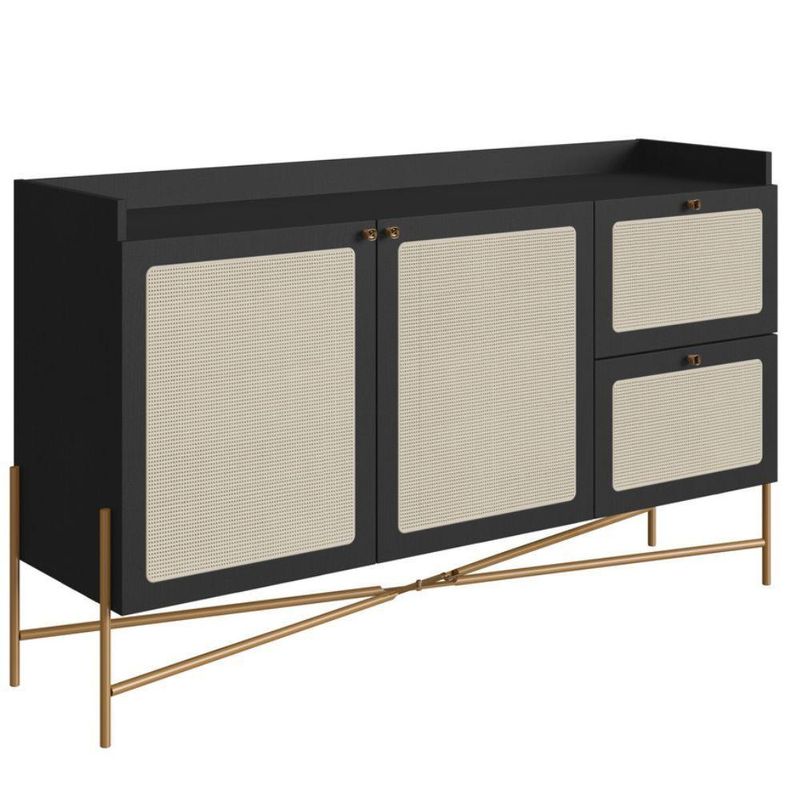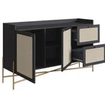 Balcão Buffet 139cm Pés Metálicos Oslo - NeroEste Balcão Buffet Oslo em tonalidade Nero é uma peça de impacto visual que ancora qualquer ambiente com sofisticação. Com 139cm de comprimento, ele oferece uma solução de armazenamento expressiva, combinando a austeridade do acabamento escuro com a leveza do estilo escandinavo.A estrutura é feita para durar, sendo confeccionada em MDP com acabamento BP, garantindo que o preto mate tenha alta resistência e uma manutenção simplificada. A peça é elevada por pés metálicos de design geométrico, que adicionam um toque de glamour industrial, contrastando de forma elegante com o corpo do móvel.O traço artesanal do design é manifestado no aplique de tela sintética nas gavetas e portas. O tom claro da palhinha sintética no fundo escuro cria um efeito de textura sofisticado, quebrando a solidez do Nero.Em termos de utilidade, o buffet é excepcionalmente bem organizado:Conta com duas portas centrais que protegem o acesso aos nichos internos, ideais para armazenar itens volumosos.Dispõe de duas gavetas laterais, perfeitas para a organização fina de utensílios e acessórios de mesa.Este móvel é a escolha ideal para quem busca um design escandinavo minimalista com uma paleta escura, adicionando tanto beleza quanto organização ao seu espaço.Garanta seu Balcão Buffet agora mesmo em nosso site!Especificações:Altura: 81cmLargura: 139cmProfundidade: 38cmNecessita montagem: simGarantia: 90 dias contra defeitos de fabricação.Limpeza e Manutenção:Limpar com pano macio umedecido em solução de água e sabão neutro e secar em seguida;Não utilizar produtos químicos. Não expor seu produto ao sol e umidadeNão exceder o limite de peso.