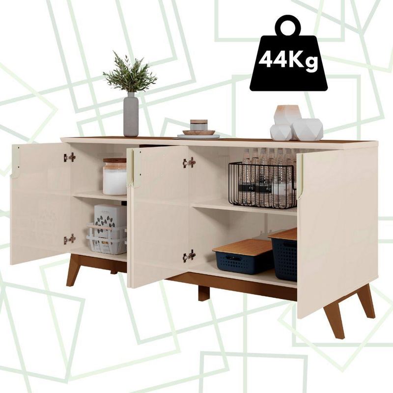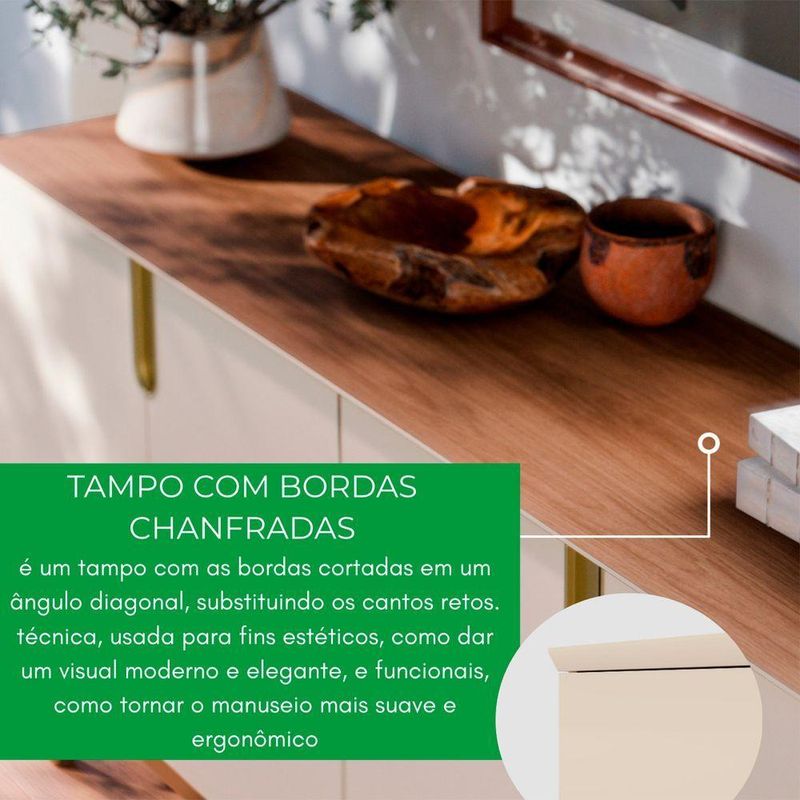 Balcão Buffet Bancada Sala Jantar Recife Off White Com AmendoaCom design moderno e sofisticado, o Buffet Recife é o móvel ideal para quem deseja unir elegância e funcionalidade em um único produto.Seu visual contemporâneo valoriza qualquer ambiente, tornando-se o destaque da sala de jantar, estar ou espaço gourmet.As portas bem distribuídas e o tampo amplo garantem excelente capacidade de organização para louças, taças, bebidas e utensílios, enquanto o acabamento em tons amadeirados e neutros proporciona harmonia e requinte.Compacto e funcional, o Buffet Recife é a escolha perfeita para quem busca praticidade no dia a dia sem abrir mão do bom gosto.Fabricado 100% em MDF, oferece durabilidade, resistência e acabamento impecável ? ideal para quem valoriza qualidade e estilo.Dimensões aproximadas:Altura: 80,5cmLargura: 160cmProfundidade: 41,8cmObservações:- Portas com amplo espaço interno para organização- Tampo espaçoso e funcional- Estrutura 100% MDF, com excelente durabilidade- Acabamento UV de alta resistência- Design moderno e elegante- Ideal para salas de jantar, estar ou espaços gourmet