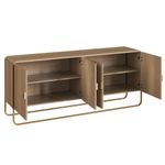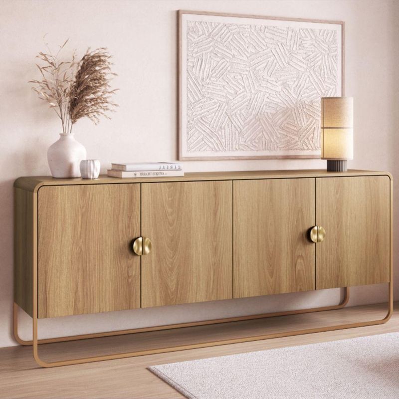 Balcão Buffet Luna - HanoverO Balcão Buffet Luna - Hanover é uma peça de design contemporâneo que combina funcionalidade com elegância. Sua estrutura robusta é confeccionada em MDP com acabamento BP, garantindo durabilidade e uma superfície resistente a riscos e manchas. A tonalidade suave da madeira, no acabamento Hanover, confere um toque natural e acolhedor a qualquer ambiente.A peça se destaca pelos seus pés metálicos em formato de barra, com acabamento em dourado, que elevam o móvel e proporcionam leveza visual, criando um contraste sofisticado com o corpo.. O design minimalista e as linhas arredondadas nas laterais adicionam um toque de suavidade e modernidade.O balcão possui quatro portas que se abrem para revelar um amplo espaço interno. Os nichos internos, divididos por prateleiras, são ideais para armazenar louças, taças, livros ou objetos de decoração, ajudando a manter a organização da sala de jantar ou de estar. Os puxadores circulares em metal, que acompanham a cor dos pés, completam a estética do móvel.Com dimensões generosas e um design versátil, o Balcão Buffet Luna - Hanover é perfeito para quem busca uma solução de armazenamento prática e elegante, capaz de se adaptar a diversos estilos de decoração, do moderno ao escandinavo.Garanta seu balcão agora mesmo em nosso site!Especificações:Altura: 75cmLargura: 180cmProfundidade: 37cmNecessita montagem: simGarantia: 90 dias contra defeitos de fabricação.Limpeza e Manutenção:Limpar com pano macio umedecido em solução de água e sabão neutro e secar em seguida;Não utilizar produtos químicos. Não expor seu produto ao sol e umidadeNão exceder o limite de peso.