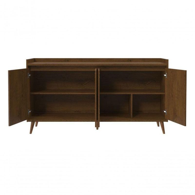 Balcao Buffet Retrô Com Espelho Delta 4 Portas Malbec - MoveisaquiO Balcão Buffet Retrô com Espelho Delta - MoveisAqui é excelente para organizar sua sala de estar ou jantar. Seus pés palito, levemente angulados destacam o estilo retrô que voltou para ficar. Possui compartimentos internos ideais para organizar seu aparelho de jantar, objetos pessoais e diversos itens necessários. Versátil, lindo e robusto, confere ao seu ambiente modernidade e organização.Dimensões do Produto Montado:Altura: 96 cmLargura: 158 cmProfundidade: 45 cmObservações:- Produzido em MDP;- 4 portas com dobradiças metálicas;- Pés palito, estilo retrô, em madeira pinus;- Peso suportado por prateleira: até 7kg;- Portas com espelho incluso;- Pintura Ultravioleta com acabamento semi brilho.