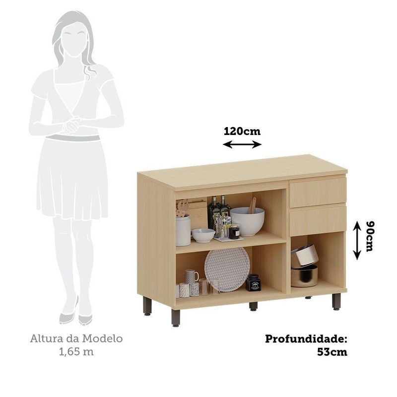 Balcão De Cozinha 120cm 3 Pts E 2 Gav C/ Tampo Aura Luciane CarvalhoO Balcao de Cozinha para Pia 120cm 3 Portas e 2 Gavetas Com Tampo da Luciane Moveis e a opcao perfeita para quem busca um movel espacoso, funcional e com design moderno. Esse balcao e ideal para cozinhas modulares, oferecendo amplo espaco de armazenamento e resistencia. Alem disso, pode ser montado com pia tambem (nao incluso), proporcionando mais flexibilidade e personalizacao ao ambiente.Caracteristicas:Garantia do Fornecedor: 3 mesesMaterial: Corpo em MDF 15mm, frontal em MDF 18mm, tampo em MDF 25mm, com acabamento em Pintura UV para maior durabilidade.Portas: 3 portas de bater com dobradicas metalicas 35mm Slowmotion, oferecendo mais suavidade e resistencia ao abrir e fechar.Gavetas: 2 gavetas com corredicas telescopicas, para um deslizamento suave e eficiente.Prateleira: 1 prateleira interna, ideal para organizar utensilios e produtos de limpeza.Puxadores: Tipo CavaMontagem: Sistema de montagem facil, com manual de instrucoes incluso.Dimensoes:Altura: 90 cmLargura: 120 cmProfundidade: 53 cmPeso Bruto: 58,60 kgPeso Liquido: 56,20 kgFique de olho:- Siga sempre as orientacoes do fabricante e utilize seu produto de acordo com o manual.- A empresa nao se responsabiliza pelo mau uso do produto, o que pode causar perda da garantia.- Certifique se que seus dados estejam atualizados, como endereco e um valido.- A sera realizada no terreo, sendo assim, em predios o deslocamento da mercadoria, subir escadas, elevadores ou por guincho para apartamentos fica sob responsabilidade do comprador.- Todas as nossas sao realizadas em horario comercial, nao sendo possivel fazer agendamento, sugerimos acompanhar o rastreio do pedido e ter alguem para receber no endereco indicado.- Nao nos encarregamos por montagens, desmontagens e outras instalacoes. Essas demandas serao de responsabilidade do comprador.- A tonalidade da cor pode variar de acordo com a iluminacao e/ou as configuracoes do seu monitor.- Objetos e decoracoes nao acompanham os produtos, imagens sao meramente ilustrativas.