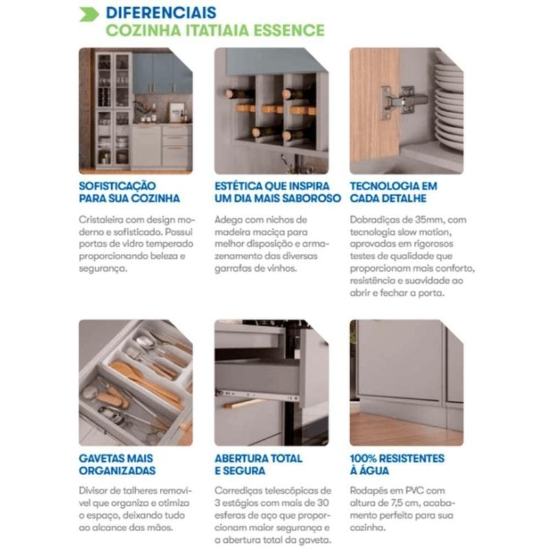 Balcão De Cozinha Itatiaia Sem Tampo 1 Porta E 3 Gavetas EssenceBalcão de Cozinha Itatiaia Essence Fendi – 1 Porta e 3 Gavetas Sem TampoSe você procura funcionalidade com design moderno, o Balcão de Cozinha da linha Essence da Itatiaia é a escolha ideal. Desenvolvido para oferecer praticidade e conforto no dia a dia, ele reúne elegância, durabilidade e soluções inteligentes para o seu espaço.Diferenciais do Produto:Divisor de talheres removível: facilita a organização dos utensílios.Corrediças telescópicas: com 3 estágios e mais de 30 de aço, proporcionam abertura total da gaveta com mais .Rodapés impermeáveis: 100% resistentes à água, ideais para ambientes úmidos como a cozinha.Design e Qualidade:Produzido em MDF, o Balcão Essence une resistência e estética com seu acabamento na cor Fendi, uma tonalidade moderna que combina com diferentes estilos de cozinha. A Itatiaia investe em qualidade e atenção aos detalhes para garantir um móvel durável e sofisticado.Especificações Técnicas:Marca: ItatiaiaModelo: 000000006000002015Linha: EssenceCor: FendiMaterial predominante: MDFAltura: 60 a 90 cm Cores: Fendi | Material predominante: Madeira MDF | Tipo de móveis de cozinha: Balcão