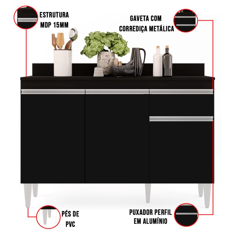 Cozinhar se tornará um hábito ainda mais prático e divertido com este lindo Balcão Vick 120 cm no tom Preto. É uma ótima opção para criar um espaço elegante e requintado. Essa cor Preto agregará um aspecto leve, charmoso e moderno à decoração. Uma dica bem legal para que a decoração da cozinha não caia no tédio e fique com um ar mais alegre, é optar por itens decorativos super coloridos, mantendo sempre a harmonia com o restante da mobília. Tudo varia de acordo com a personalidade e estilo do usuário(a). Esse balcão acompanha tampo, possui 3 portas e 1 gaveta de puxadores em perfil alumínio e ainda conta com 1 prateleira interna oferecendo maior organização. Além disso, pés em PVC e estrutura em MDP com acabamento em pintura BP. Escolha o seu Balcão Vick, e deixe sua cozinha um sucesso! Dimensões Balcão Altura total: 87 cm Largura total: 120 cm Profundidade total: 39 cm Peso: 30 kg Especificações do Produto Material Estrutura: MDP 15 mm. Acabamento: Pintura BP. Escala de Brilho: Fosco. Peso suportado: Até 30 kg. Possui Prateleiras: Sim, 1 Prateleira. Possui Portas: Sim, 3 Portas. Tipo de Porta: Convencional. Possui Gavetas: Sim, 1 Gaveta. Possui Nichos: Não. Possui Puxador: Sim, Alumínio. Possui Tampo: Sim, Tampo de MDP 15 mm Possui Pés: Sim, PVC com Regulagem Cor: Preto Garantia: 90 dias contra defeito de fabricação. Necessita Montagem: Sim. Complexidade da Montagem: Média: Deve ser montado por um montador especializado. Instruções de limpeza: Para maior durabilidade do produto, recomendamos mantê-lo longe de umidade e poeira e da exposição direta a luz solar. A limpeza deve ser feita usando um pano macio e semi úmido, sem o uso de produtos químicos como álcool ou Lustra Móveis. Ao precisar movimentar o móvel, evite arrasta-lo ou levanta-lo sozinho, peça ajuda a outra pessoa para realizar a tarefa. Você irá receber: 01 Volume com 01 Balcão com Tampo Observações Relevantes - Todos os produtos vão embalados com total segurança; - As cores dos produtos podem sofrer alterações dependendo do seu monitor; - Para futuras compras, não garantimos a mesma tonalidade de cor, pois existe variação a cada lote do fabricante do tecido; - As imagens são meramente ilustrativas, não acompanham objetos de decoração e eletros; - Confira as dimensões do produto no momento da compra e certifique-se de que passará normalmente por escadas, elevadores, portas e corredores; - Importante: Por se tratar de estofado as medidas podem ter uma pequena variação em até 3 cm; - Não nos responsabilizamos no ato da entrega por montagens, desmontagens, instalações de produtos; - Não nos responsabilizamos no ato da entrega por subir escadas, elevadores, nem utilização de guinchos ou equipamentos similares para acesso a pisos superiores em apartamentos; - A entrega do produto é realizada em todo território nacional, até onde as rodovias alcançam, entregas fluviais ou aéreas devem ser cotadas a parte; - Observando as orientações acima, evita-se futuros desagrados ou imprevistos com a entrega do produto. Havendo despesas adicionais, serão de responsabilidade do cliente;