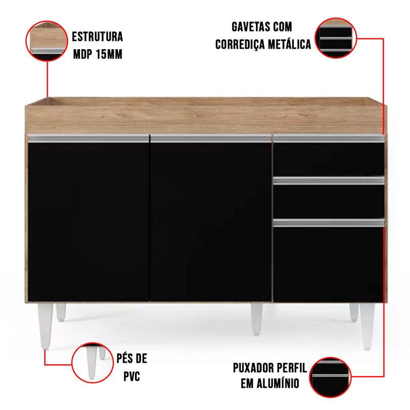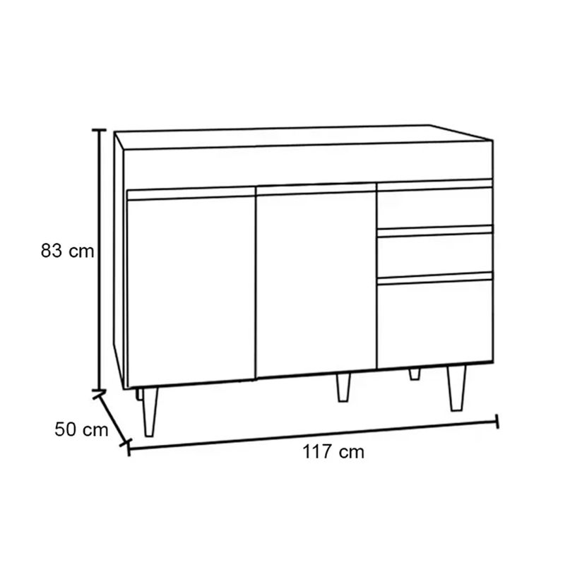 Imagine ter uma cozinha funcional, com espaço e móveis ideais para atender suas necessidades. Seria maravilhoso né!? E por que não realizar esse sonho de consumo? A D?Rossi, quer tornar sua rotina diária mais prática. Você concorda comigo que um dos lugares da casa que mais passamos horas é na cozinha, seja preparando os alimentos, ou fazendo aquela faxina não é!? Que tal economizar mais tempo investindo neste Balcão sem Tampo Beth, no tom Castanho/Preto 120 cm? Uma peça funcional, durável e resistente à umidade, possibilita que você se organize melhor, tanto nos preparos dos alimentos, quanto na limpeza e organização. Produzido com materiais de ótima qualidade, sua estrutura é feita em MDP, pés em PVC, contém 3 portas com puxador em perfil metálico contendo amplo espaço interno e 2 gavetas com corrediça metálica, ideais para seus talheres, panos de pratos, dentre outros. Tenho certeza que você não vai querer ficar sem o seu! Garanta agora mesmo seu Balcão Beth. Dimensões Balcão Altura total: 83 cm Largura total: 117 cm Profundidade total: 50 cm Peso: 38 kg Especificações do Produto Material Estrutura: MDP 15 mm. Acabamento: Pintura BP. Escala de Brilho: Fosco. Peso suportado: Até 30 kg. Possui Prateleiras: Sim, 1 Prateleira. Possui Portas: Sim, 3 Portas. Tipo de Porta: Convencional. Possui Gavetas: Sim, 2 Gavetas Possui Nichos: Não. Possui Puxador: Sim, Alumínio. Possui Tampo: Não. Possui Pés: Sim, PVC com Regulagem Cor: Castanho e Preto Garantia: 90 dias contra defeito de fabricação. Necessita Montagem: Sim. Complexidade da Montagem: Média: Deve ser montado por um montador especializado. Instruções de limpeza: Para maior durabilidade do produto, recomendamos mantê-lo longe de umidade e poeira e da exposição direta a luz solar. A limpeza deve ser feita usando um pano macio e semi úmido, sem o uso de produtos químicos como álcool ou Lustra Móveis. Ao precisar movimentar o móvel, evite arrasta-lo ou levanta-lo sozinho, peça ajuda a outra pessoa para realizar a tarefa. Você irá receber: 01 Volume com 01 Balcão Observações Relevantes - Todos os produtos vão embalados com total segurança; - As cores dos produtos podem sofrer alterações dependendo do seu monitor; - Para futuras compras, não garantimos a mesma tonalidade de cor, pois existe variação a cada lote do fabricante do tecido; - As imagens são meramente ilustrativas, não acompanham objetos de decoração e eletros; - Confira as dimensões do produto no momento da compra e certifique-se de que passará normalmente por escadas, elevadores, portas e corredores; - Importante: Por se tratar de estofado as medidas podem ter uma pequena variação em até 3 cm; - Não nos responsabilizamos no ato da entrega por montagens, desmontagens, instalações de produtos; - Não nos responsabilizamos no ato da entrega por subir escadas, elevadores, nem utilização de guinchos ou equipamentos similares para acesso a pisos superiores em apartamentos; - A entrega do produto é realizada em todo território nacional, até onde as rodovias alcançam, entregas fluviais ou aéreas devem ser cotadas a parte; - Observando as orientações acima, evita-se futuros desagrados ou imprevistos com a entrega do produto. Havendo despesas adicionais, serão de responsabilidade do cliente;