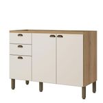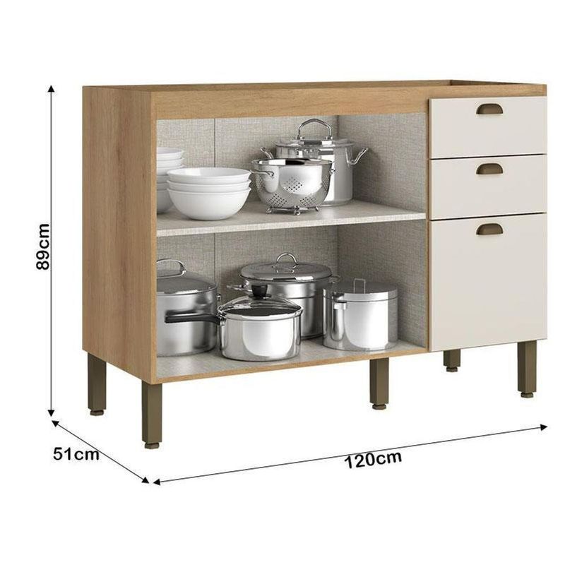 Balcão De Pia 120 Cm 2 Portas 3 Gavetas Sem Tampo Finesse Capuccino Off White - ThbBalcão de Pia 120 cm 2 Portas 3 Gavetas Finesse Capuccino Off White - THBO Balcão Finesse 120 cm da THB é a combinação perfeita de beleza, funcionalidade e praticidade para a sua cozinha. Com 2 portas e 3 gavetas espaçosas, ele oferece excelente capacidade de armazenamento, permitindo manter utensílios, panelas e mantimentos sempre organizados e ao alcance das mãos. Seu design moderno une o aconchego da cor Capuccino com a elegância do Off White, criando um visual sofisticado e harmonioso, que se adapta facilmente a diversos estilos de decoração. Produzido em MDP de alta resistência, o móvel garante durabilidade e estabilidade, ideal para o uso diário. Desenvolvido pela THB com toda qualidade pra você cliente.Balcão 120 cm 2 Portas 3 Gavetas sem Tampo Finesse Capuccino Off White - THBCaracterísticas Técnicas:- Desenvolvido em MDP de alta resistência- Balcão de Cozinha sem Tampo- BP fosco (resistente e fácil de limpar) - Pintura na cor Capuccino Off White - Corrediças telescópicas -MDP de alta resistência- 2 portas com dobradiças metálicas-3 gavetas espaçosas com corrediças metálicas - Sistema de amortecimento - Design modernoDimensões: Altura: 89 cm Largura: 120 cm Profundidade: 51 cmInformações importantes: - Nossas cargas possuem seguro, portanto, no ato da entrega, confira a quantidade de volumes recebida, e também o estado da embalagem. Se houver qualquer inconsistência, não assine o comprovante de entrega; - O armazenamento do produto no endereço de entrega é de responsabilidade do comprador. Evite apoiar o produto na vertical, bem como evite áreas que deixem o produto exposto a chuva ou umidade excessiva; - Pequenas variações de tonalidade são possíveis, em razão da diferença de resolução da tela onde o anúncio está sendo visualizado. Se notar diferença expressiva, comunicar a empresa antes de efetuar a montagem; - O serviço de entrega contratado contempla a entrega até a primeira área coberta ou portaria, não sendo coberto o ato de subir escadas/elevadores ou adentrar nas residências; - Não nos responsabilizamos pela montagem, desmontagem ou instalação do produto. Cor: Capuccino/ Off White | Peso do Produto: | Largura: | Altura: | Acompanha Pia de Cozinha: | Produto: | Tonalidade: